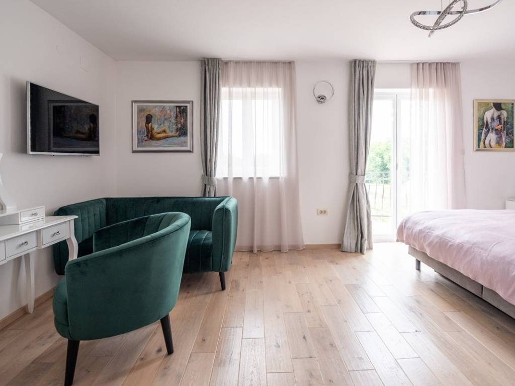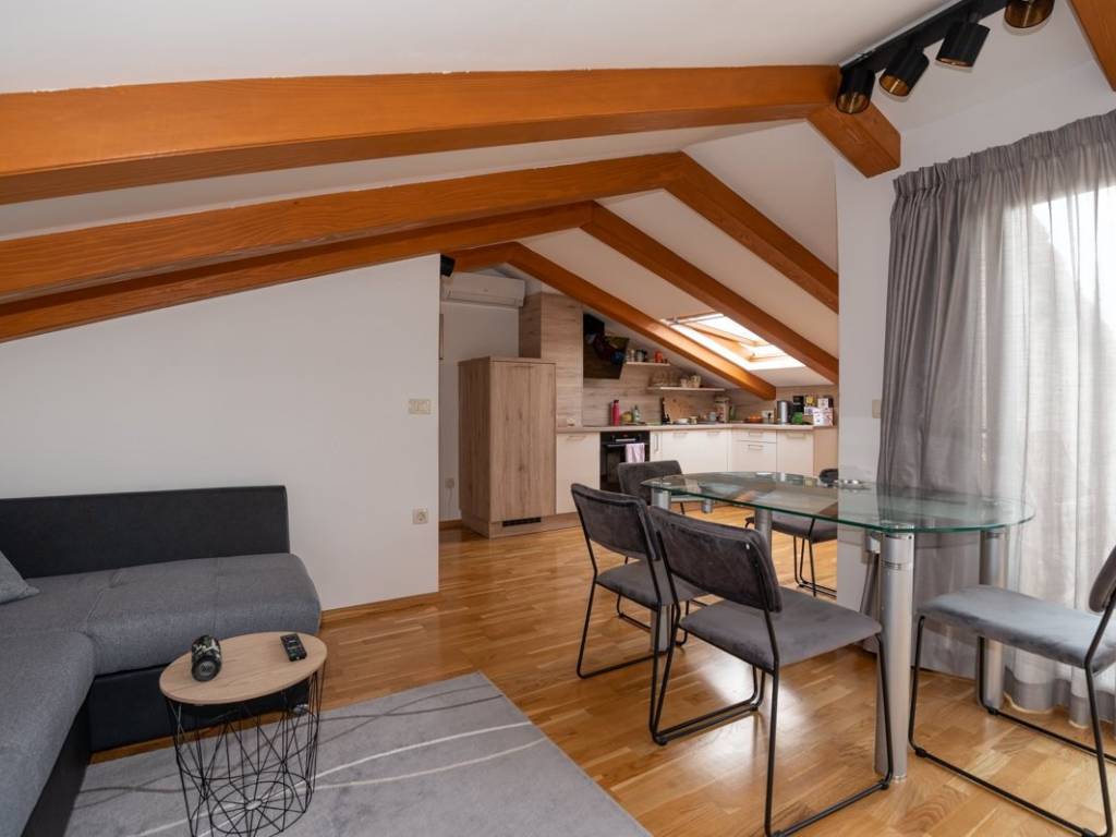 In the basement there is a garage for two to three cars, laundry, toilet and storage. The internal stairs also connect the ground floor where we have a beautiful living room with balcony, toilet, storage, kitchen and dining room with access to the terrace where there is a swimming pool, and a place to hang out in the open with a fireplace. The living room also has an indoor fireplace for a good winter atmosphere. Further up the internal stairs we come to the next floor where there are two bedrooms, each with its own bathroom, balcony and terrace, as well as another additional toilet. Also, this house has three more rooms in the attic with a separate entrance, each of which has its own bathroom and connections for a mini kitchen. The house is intended for family life with the possibility of tourist renting an additional three separate rooms or studios, or renting the whole house in the form of tourism.