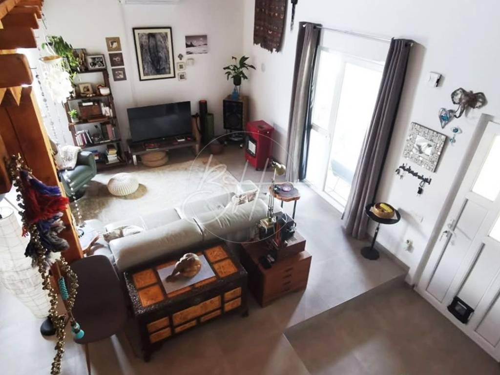 Prostrani dnevni boravak s blagovaonicom (43 m²) ima visoke stropove, a drveno stepenište vodi na galeriju od 17,5 m² koja trenutno služi kao ured, ali se lako može pretvoriti u dodatnu sobu. Ostatak kuće čine odvojena, potpuno opremljena kuhinja, kupaonica i dvije svijetle spavaće sobe s visokim stropovima.
