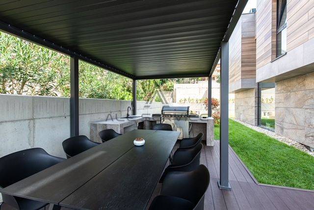 te toplim detaljima čine čitav unutarnji interijer izuzetnim. Posebnost ove nekretnine osim vrhunskih materijala su i staklene stijene s niskoprofilnim okvirima