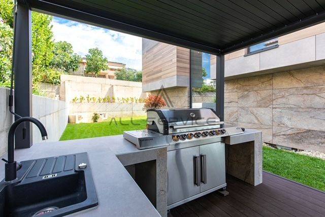 Uz kuću je smještena vanjska natkrivena kuhinja s plinskim roštiljom i prostorom za druženje.