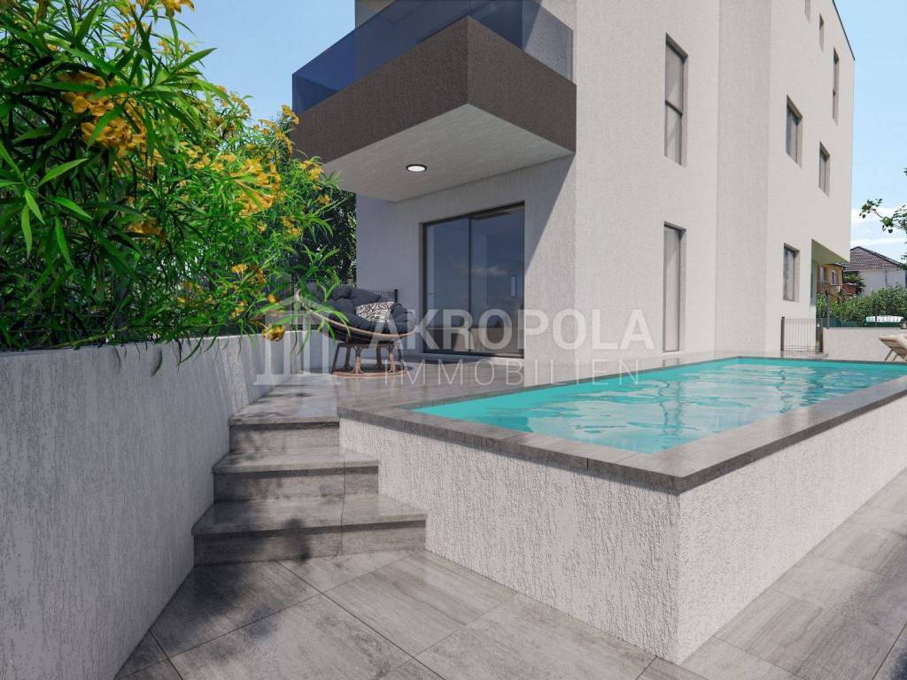 Pula stan na prodaju novogradnja, prizemlje, s vrtom i bazenom.