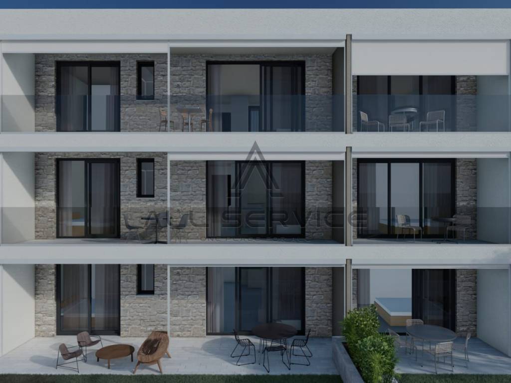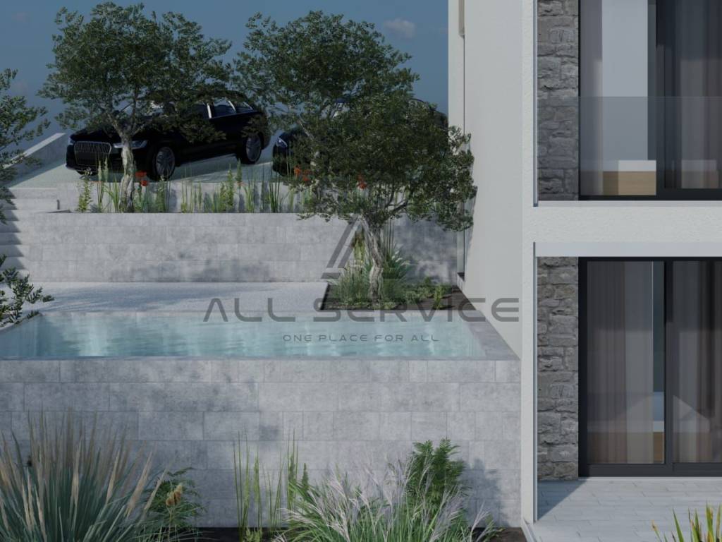 Svim stanarima će biti omogućeno korištenje prostranog bazena s kojeg se pruža pogled na more, a udaljenost od mora je svega 100-ak metara!