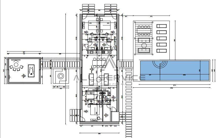 Das Projekt sieht den Bau eines geräumigen und funktionalen Hauses vor, das zusätzliche Außenanlagen umfasst, darunter eine Veranda neben einem 15 m² großen Pool, einen 56 m² großen Swimmingpool, eine 10 m² große Veranda und ein 30 m² großes Nebengebäude. Dieses Nebengebäude, das als Spielzimmer mit einem Billardtisch und anderen Einrichtungen geplant ist, kann auch als Gästehaus genutzt werden.