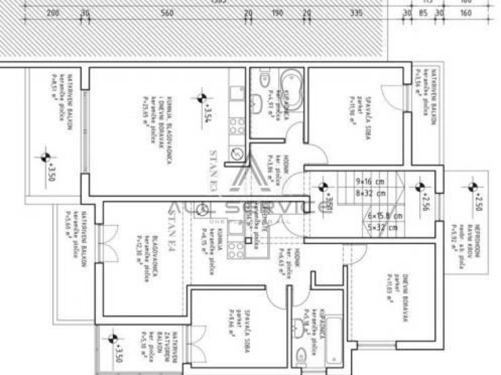 Stan ima čak četiri balkona ukupne površine 22m2 što čini ukupnu korisnu površinu stana od: 126m2.