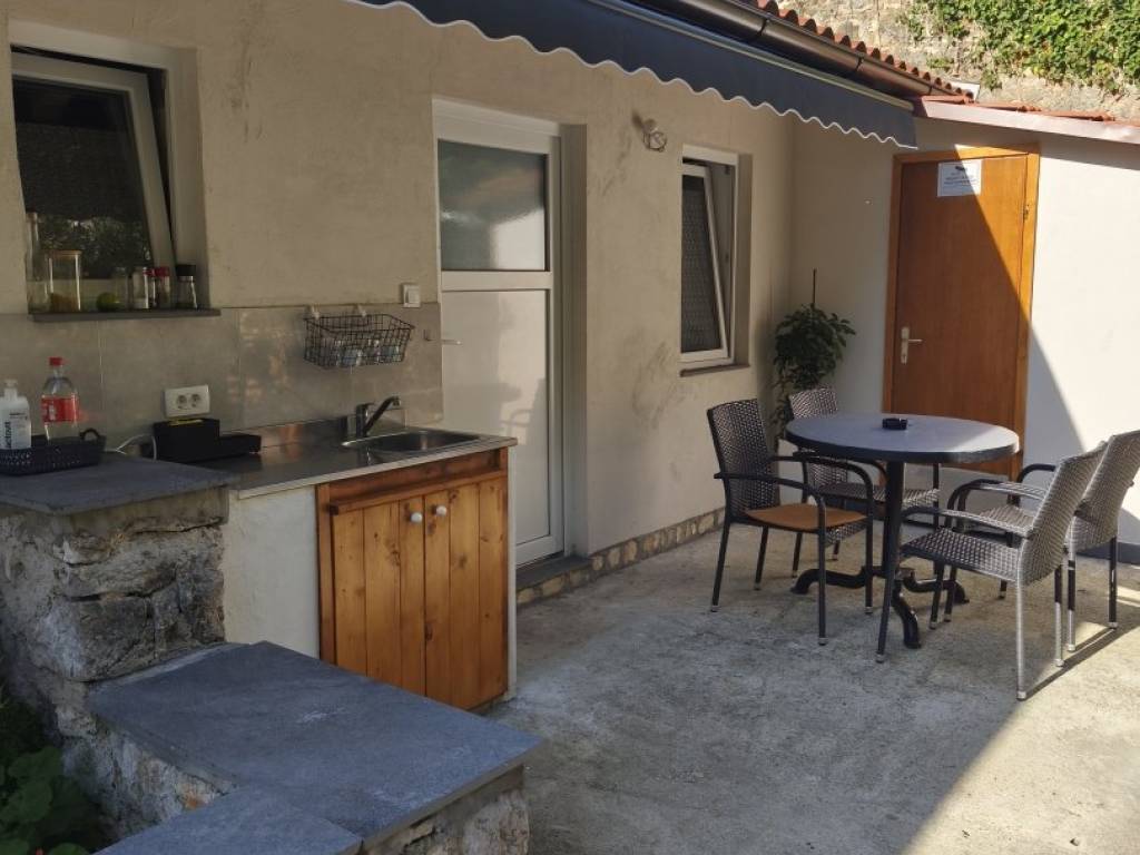 Apartman ima balkon s pogledom na more, a pripada mu i dvorište površine 40 m², koje uključuje vanjsku kuhinju, roštilj i vanjski tuš – savršeno za ljetna druženja i odmor na otvorenom. Dodatna praktičnost osigurana je ostavom za pohranu stvari.