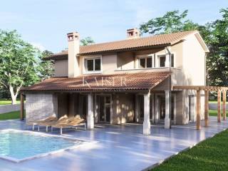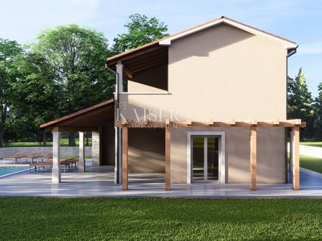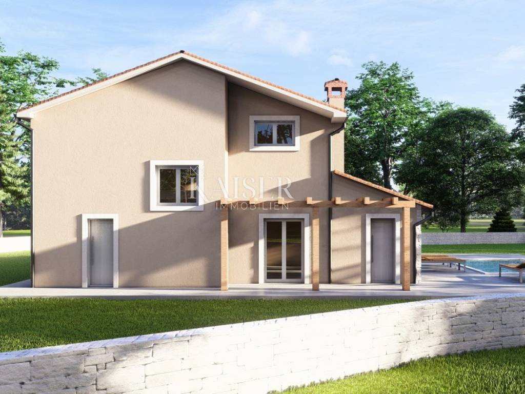 Kaiser Immobilien nudi u prodaju novu, kamenu samostojeću vilu u samom srcu Istre. Vila se nalazi na svojoj parceli, okružena prekrasnom okućnicom. Nalazi se na rubu malog autohtonog sela, sa svega nekoliko susjednih kuća u blizini. Odmah do vile gradi se druga vrlo slična samostojeća vila nešto manje kvadrature.