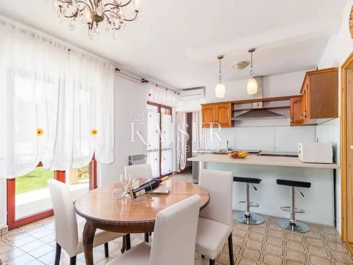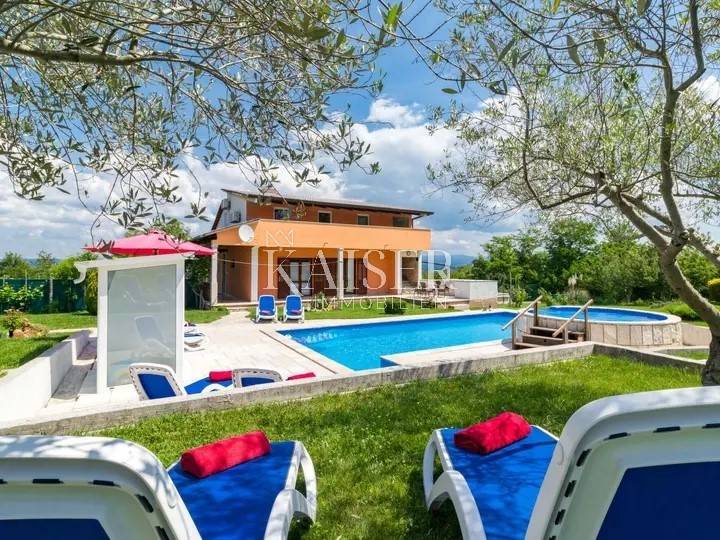 Kuća je potpuno opremljena te se je do sada iznajmljivala u ljetnim sezonama. Kuća se sastoji od prizemlja i prvog kata, komotnih i prostranih terasa te predivno uređenog dvorišta u kojem se nalazi lijevani bazen, ima plići dio za djecu iz kojeg se voda preljeva u dublji dio, tu se nalazi i dječje igralište sa dječjim sadržajem i natkrivena terasa sa roštiljem za vanjske ručkove i večere.