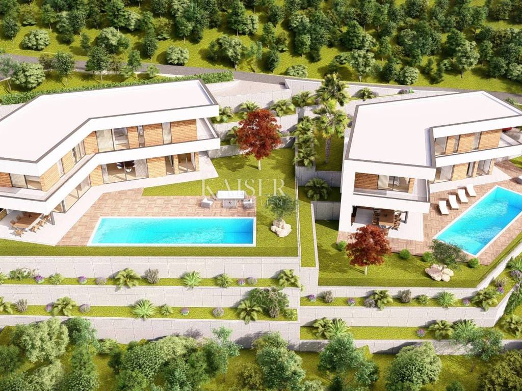 Teren je kaskadnog oblika te pruža prekrasne poglede na Mošćeničku Dragu, more i otok Cres.