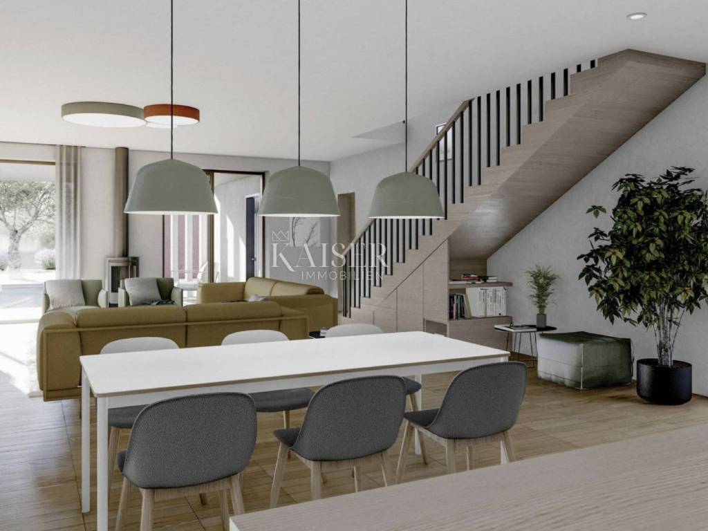 Prizemlje Vas uvodi u moderni dnevni dio sa otvorenim prostorom s kuhinjom, blagovaonom i dnevnim boravkom.