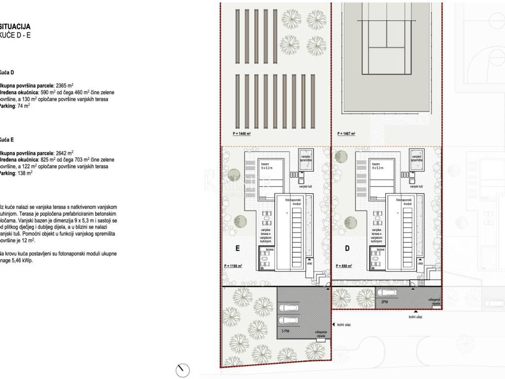 Parking je ukupne kvadrature 138 m2. Stambena površina iznosi 176 m2.