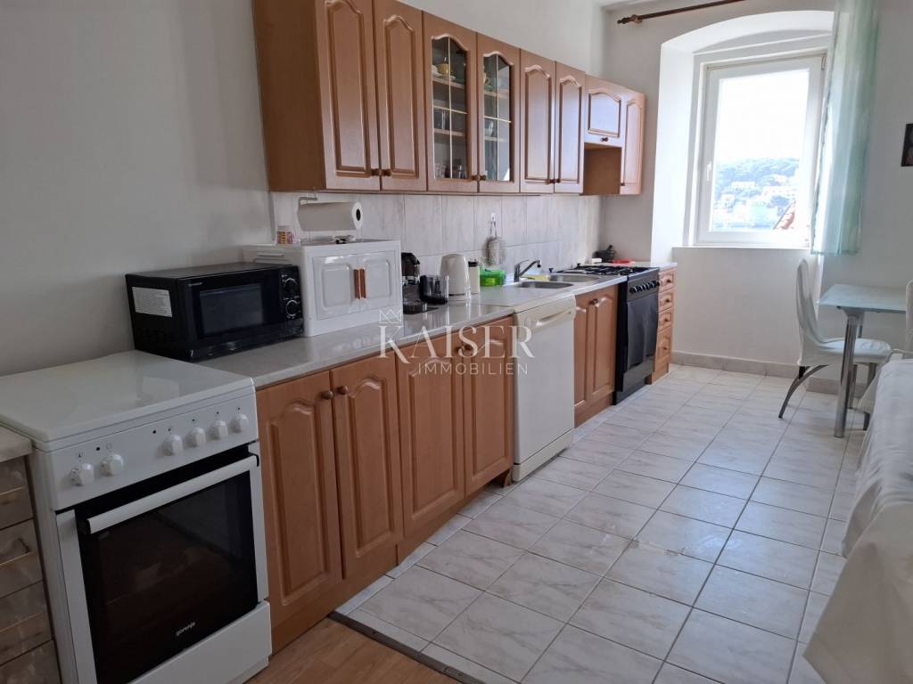 Kaiser-Immobilien predstavlja stan od 87m2, u blizini luke i centra Malog Lošinja. Ovaj svijetli stan nalazi se na 2. katu stambene zgrade, orijentiran je prema jugozapadu i nudi savršen raspored prostora. Sastoji se od kuhinje, dnevnog boravka, blagovaonice, 3 spavaće sobe, kupaonice, balkona te drvarnice u prizemlju.