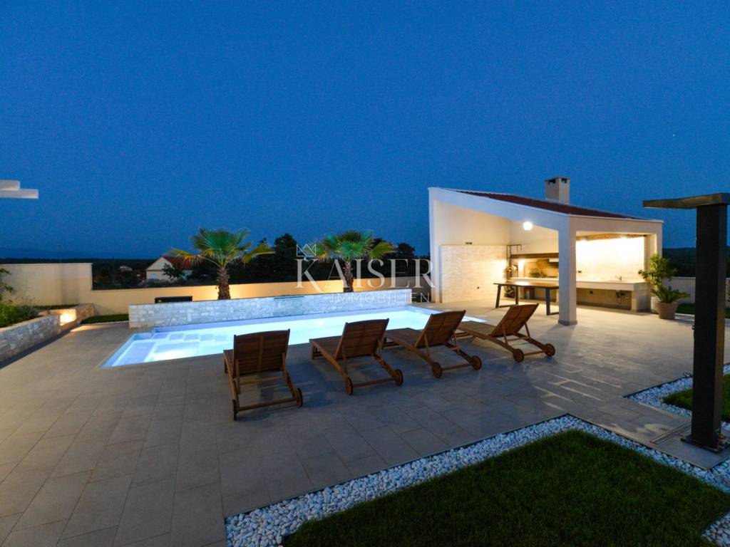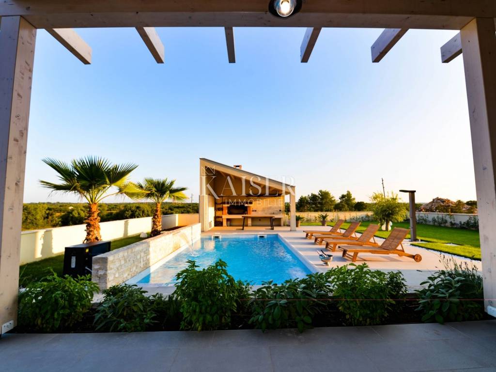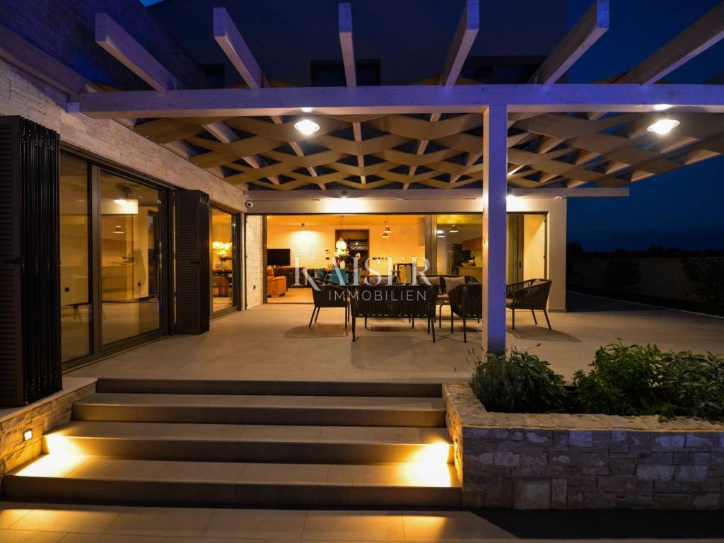 Kaiser Immobilien iz svoje ponude izdvaja predivnu luksuznu vilu površine 344 m², smještenu na impresivnom imanju od 4.200 m², u mirnom i zelenilom okruženom dijelu Poljica Briga, svega 12 km od povijesnog grada Zadra.