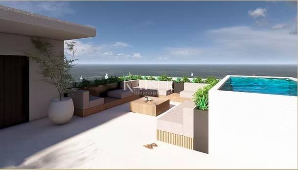 Raskošno raspoređen na dvije etaže, ovaj apartman objedinjuje sve elemente suvremenog luksuza – visoke stropove, prozračne i svijetle prostore, mirnu privatnu zonu za odmor, kao i vlastitu rooftop oazu s mogućnošću izgradnje bazena i ljetne kuhinje.