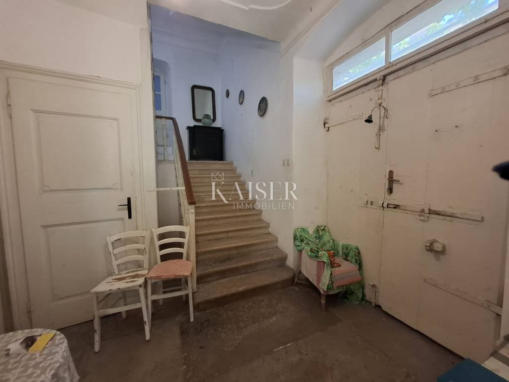 Ova impresivna nekretnina prodaje se potpuno namještena ali ipak joj je potrebno jedno temeljito renoviranje kako bi zasjala starim sjajem prošlih, slavnih lošinjskih vremena. Pogodna je za više namjena i ima puno potencijala, te je npr. idealna za uređenje manjih tzv. bed and breakfast hotelčića. Kuća se nalazi na samo nekoliko koraka ugodne šetnje kroz šarmantne uličice grada do samog centra, rive i svih bitnih sadržaja. Nekretnina nema prostor za parkiranje vozila ali 200 m od kuće nalazi se gradsko parkiralište gdje se može zakupiti parkirni prostor.