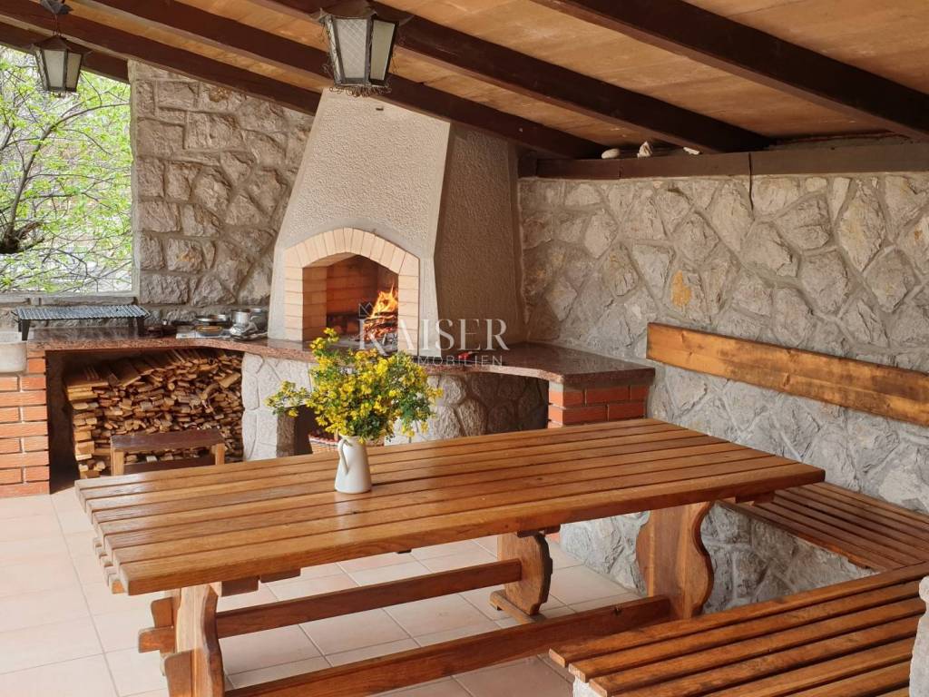 Agencija za nekretnine Kaiser Immobilien iz Opatije predstavlja obiteljsku kuću koja se nalazi na vrlo mirnoj lokaciji u slijepoj ulici u mjestu Trinajstići i okružena je velikim zemljištem ukupne površine 1 835 m2 (1 643 m2 vrt i dvorište + 192 m2 izgrađena površina).