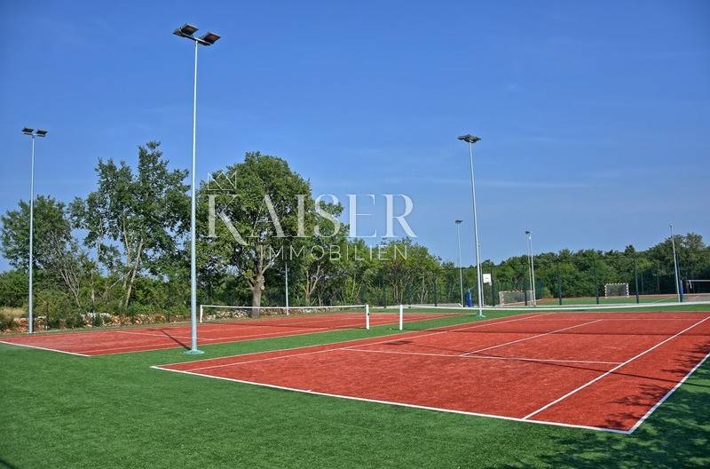 Villa ima zajednički sadržaj koji predstavlja jedinstvenu ponudu kod ovakvog tipa kuće za odmor u Istri a koji se sastoje od 2 teniska terena, jednog višenamjenskog igrališta za košarku, odbojku i mali nogomet, boćališta, fitnessa na otvorenom, dječjeg igrališta i vrta u kojem gosti kuća mogu ubrati ekološki uzgojeno povrće. Svi navedeni sadržaji su naravno uključeni u cijenu.
