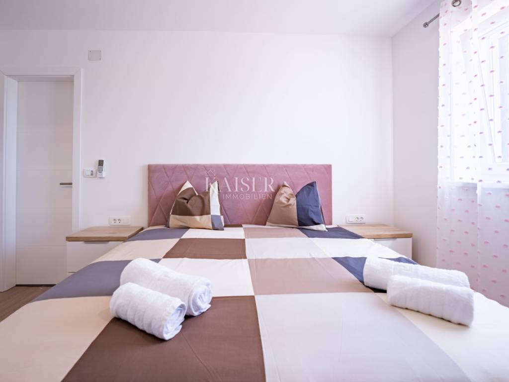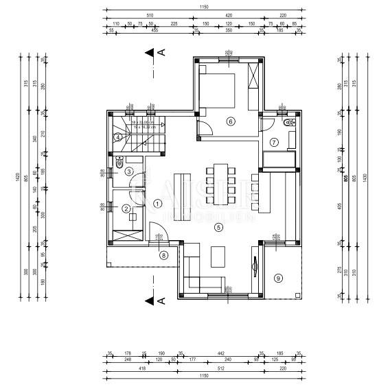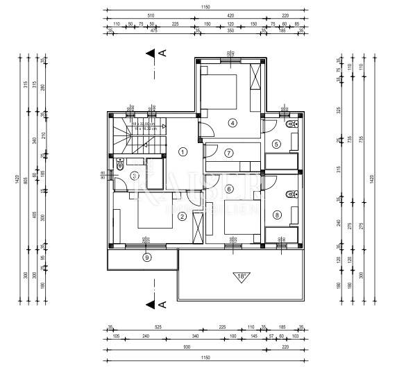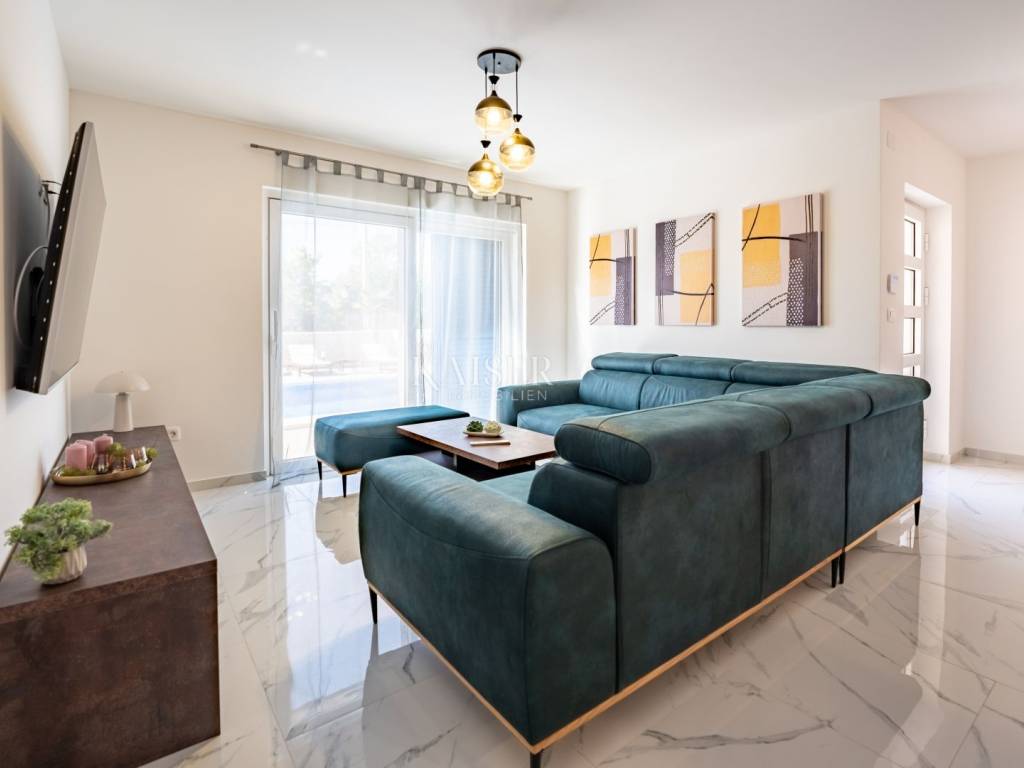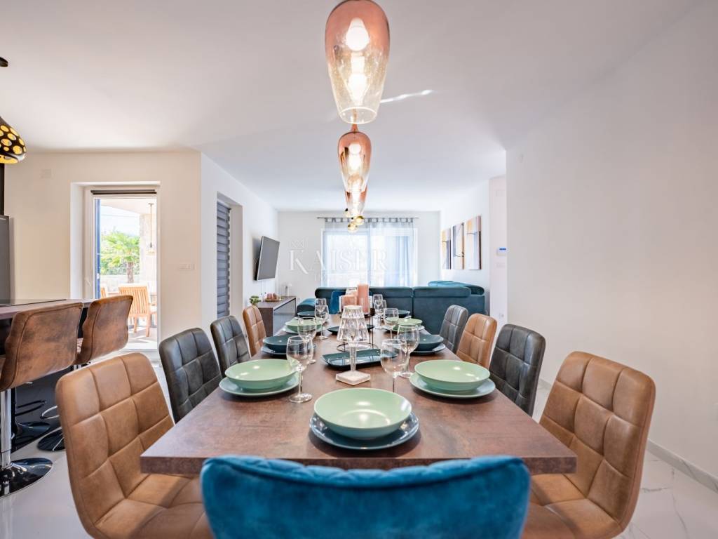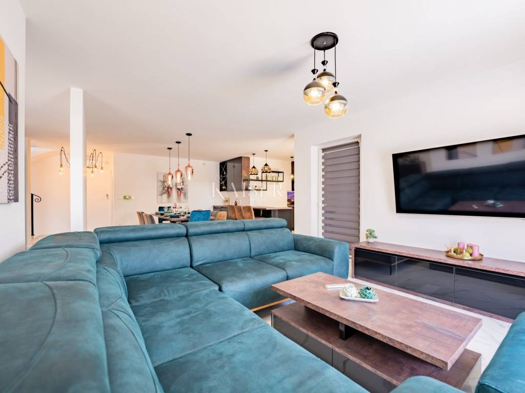 Ova nekretnina prostire se na dvije etaže ukupne stambene površine 185m2. U prizemlju imamo prostrani dnevni prostor koji uključuje kuhinju, blagovaonicu i boravak, te spavaću sobu sa kupaonicom. U prizemlju se još nalaze ostava i toalet. Na katu do kojeg se dolazi stubištem imamo tri spavaće sobe sa tri kupaonice i vešeraj. Dvije spavaće sobe imaju izlaz na prostranu terasu.