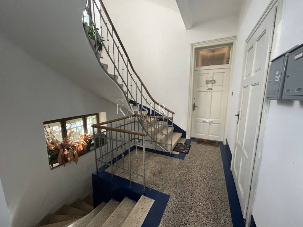 Stan ima izlaz iz dnevnog boravka na prostranu osunčanu terasu sa koje se prostire djelomičan pogled na more. Nalazi se u mirnoj ulici sa puno zelenila i pažljivo uređenom okućnicom. Sa ovim stanom dobivate mirno okružje sa blagodatima centra grada. Krov je nov, a fasada u jako dobrom stanju.
