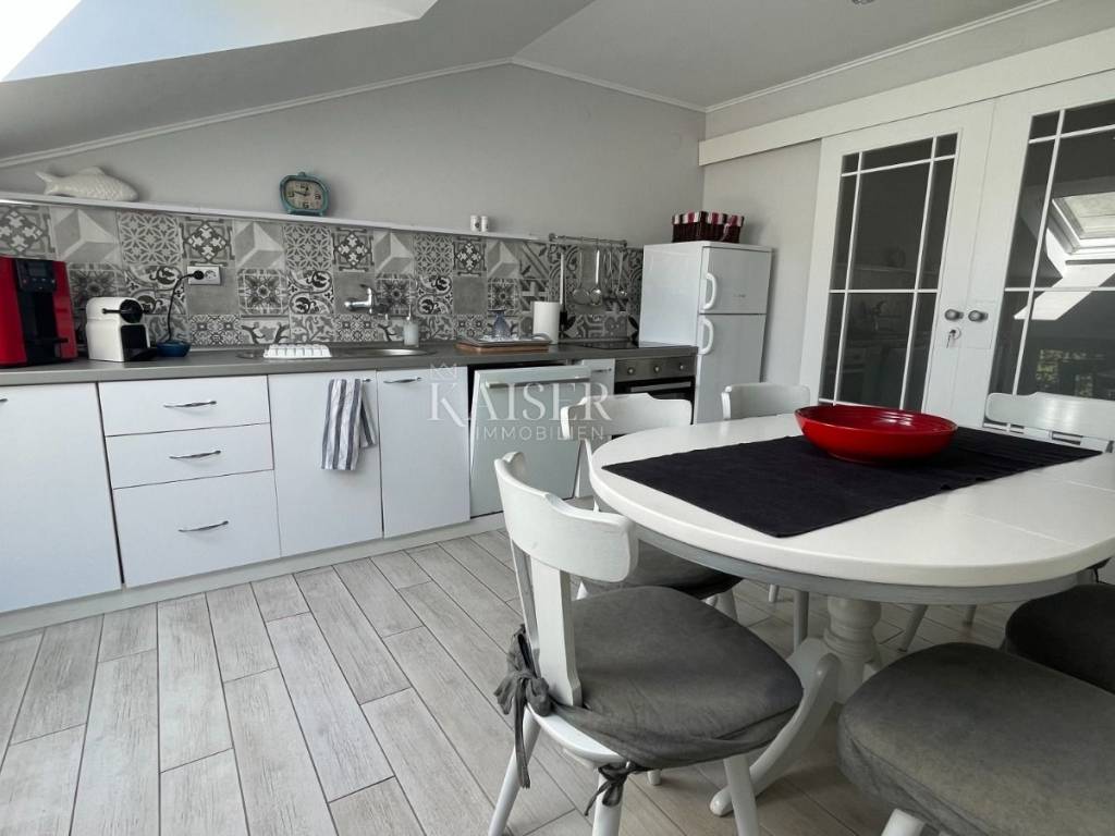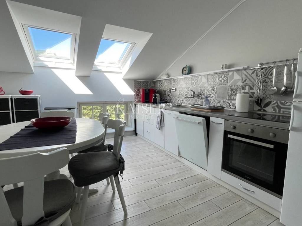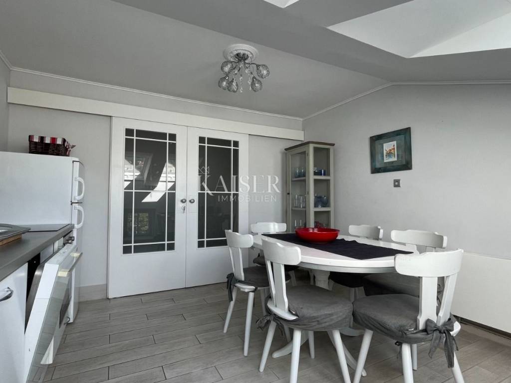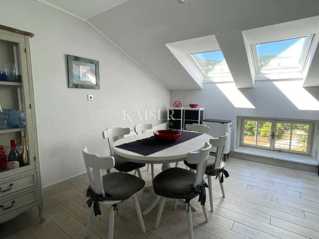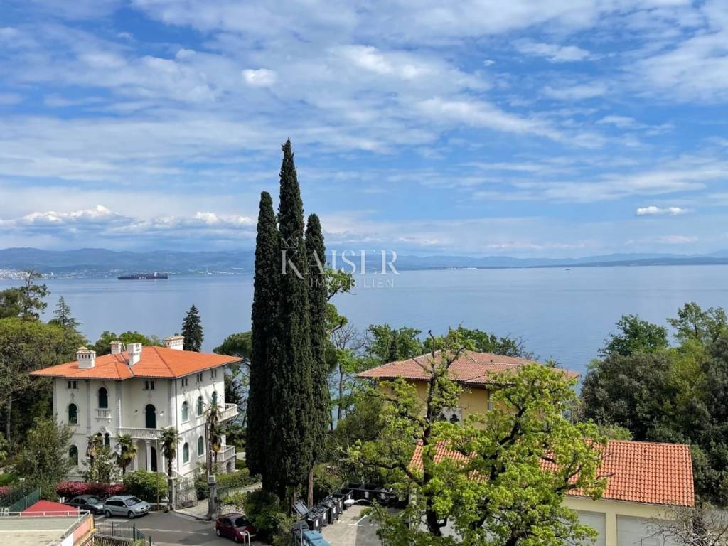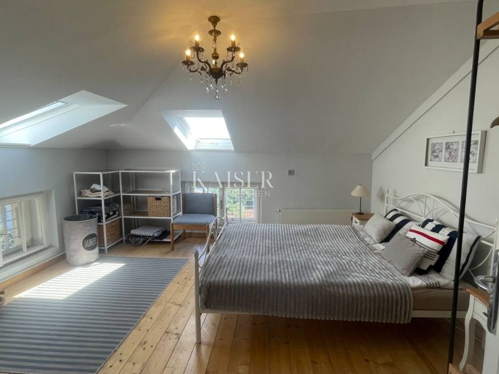 Agencija za nekretnine Kaiser Immobilien ponosno predstavlja jedinstvenu priliku za kupnju prekrasnog stana smještenog na zadnjem 3. katu uredne Austrougarske vile iz 1908. godine u Lovranu. Vila sadrži ukupno 5 stanova i nalazi se samo 100 metara od plaže i šetališta Lungomare, 3,5 km od Opatije.