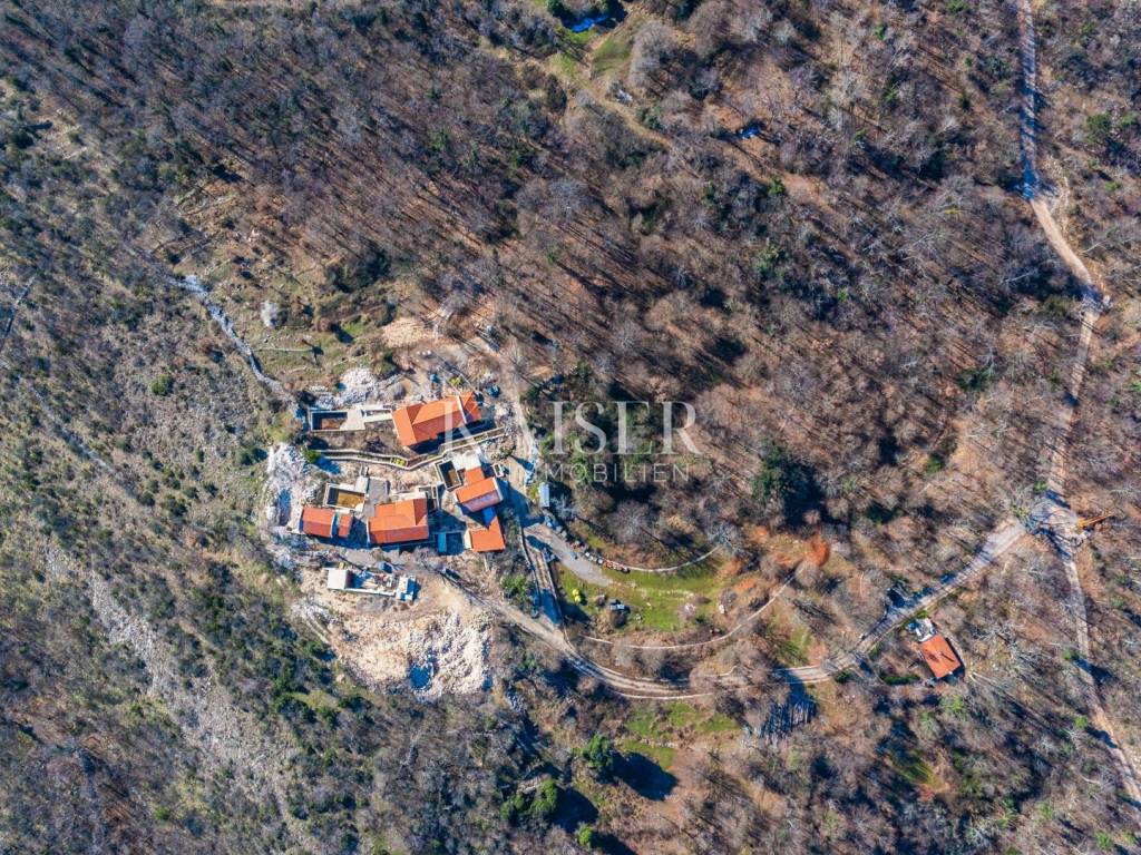 Ovaj impresivni kompleks predstavlja nedovršeni projekt villa resorta koji se prostire na ukupnoj površini od gotovo 54.000 m2 usred Parka prirode Učka. Nadmorska visina od 550 m znači vrlo ugodnu mikroklimu i za vrućih ljetnih dana, a praktički savršena južna orijentacija na ovom dijelu obale jamči maksimalnu osunčanost tijekom cijelog dana.