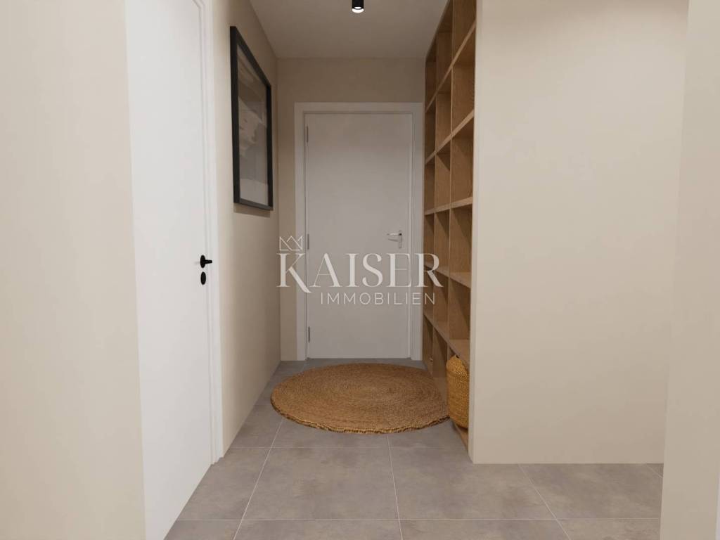 Kaiser Immobilien prodaje moderan stan na 1. katu u novogradnji na samo 500 m od mora i centra mjesta. Ovaj prekrasan stan smješten je na mirnoj lokaciji udaljen 5 km od centra grada Poreča i 7 km od centra grada Novigrada.