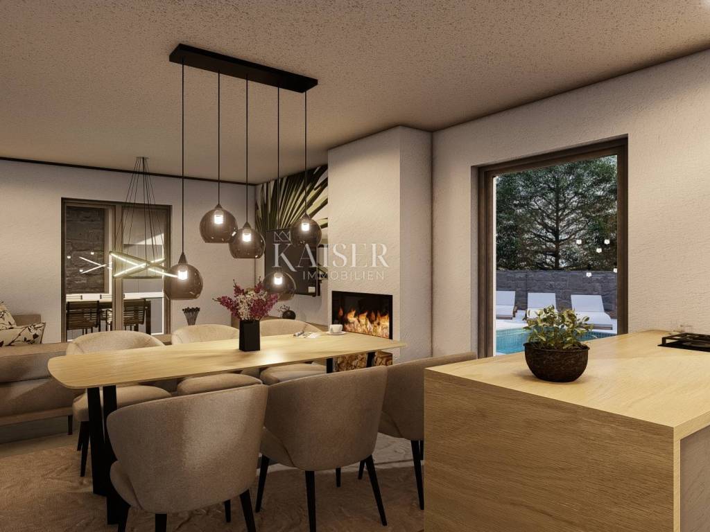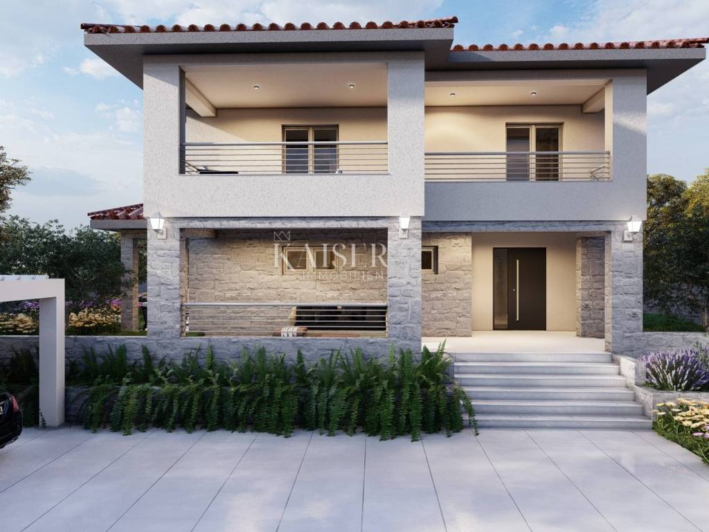 Kaiser immobilien posreduje u prodaji luksuzne ville u novogradnji, smještene u mirnom i idiličnom okruženju u okolici Dobrinja, 1800m od mora.