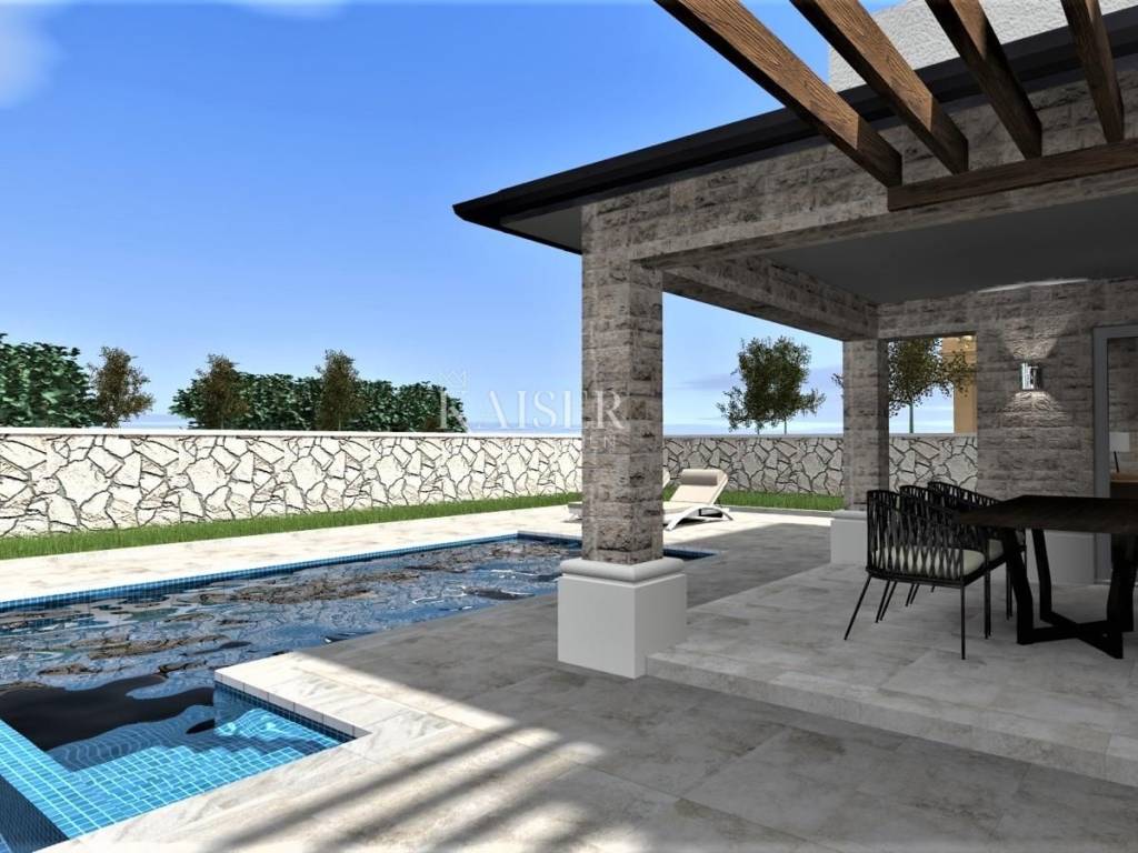 Kaiser immobilien posreduje u prodaji novoizgrađene ville sa bazenom na mirnoj lokaciji u okolici Vrbnika na otoku Krku, cca 4 kilometra od mora.