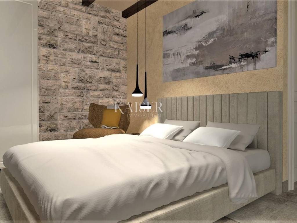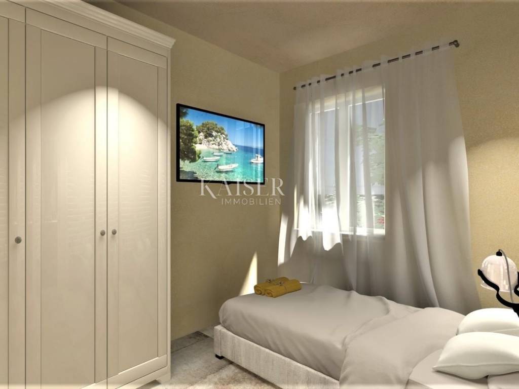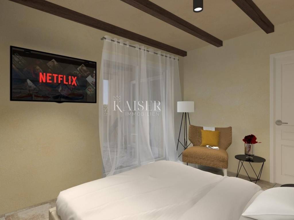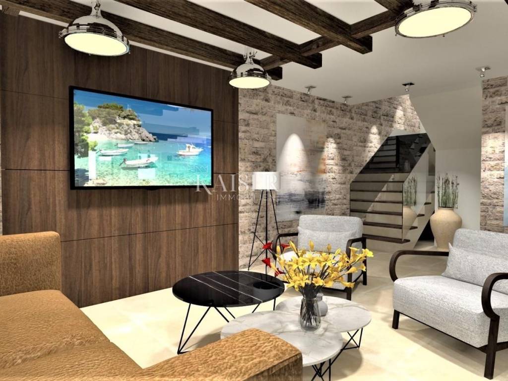 Villa ukupne stambene površine 137m2 proteže se na dvije etaže. U prizemlju se nalazi otvoreni koncept boravka, kuhinje u blagovaonice, te gostinjski toalet. Unutarnjim stubama dolazi se na kat gdje se nalaze tri spavaće sobe od kojih dvije imaju izlaz na terasu sa djelomičnim pogledom na more, te dvije kupaonice.