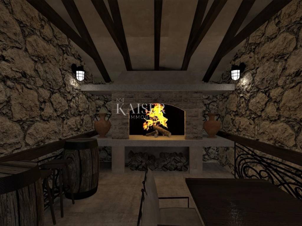 Na uređenoj okućnici površine 550m2 smješten je bazen sa tušem i sunčalištem, ljetna kuhinja i pomoćni objekt kao stvoren za druženje u hladnijim danima. Objektu pripadaju i dva parkirna mjesta.