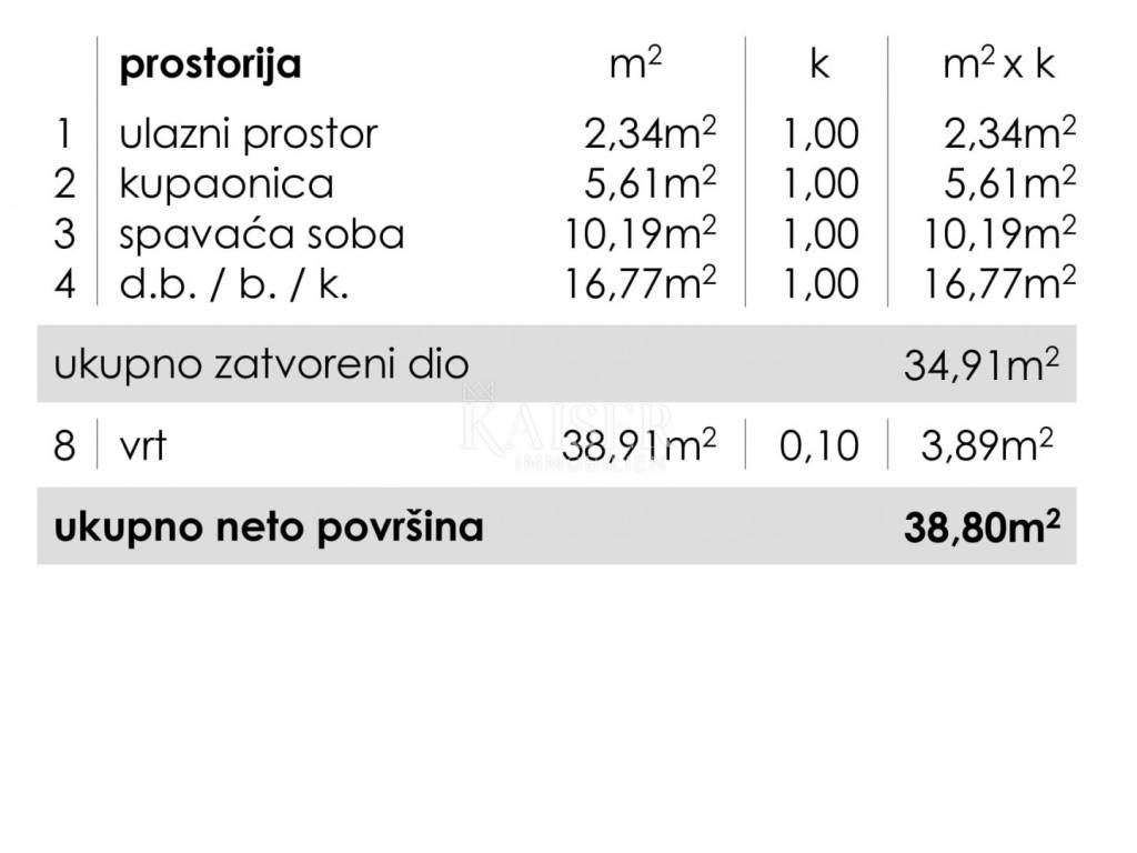 Stambena površina: 34,91 m²