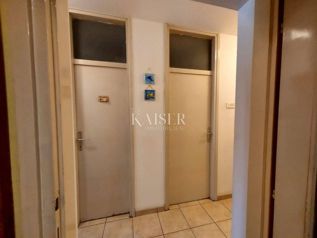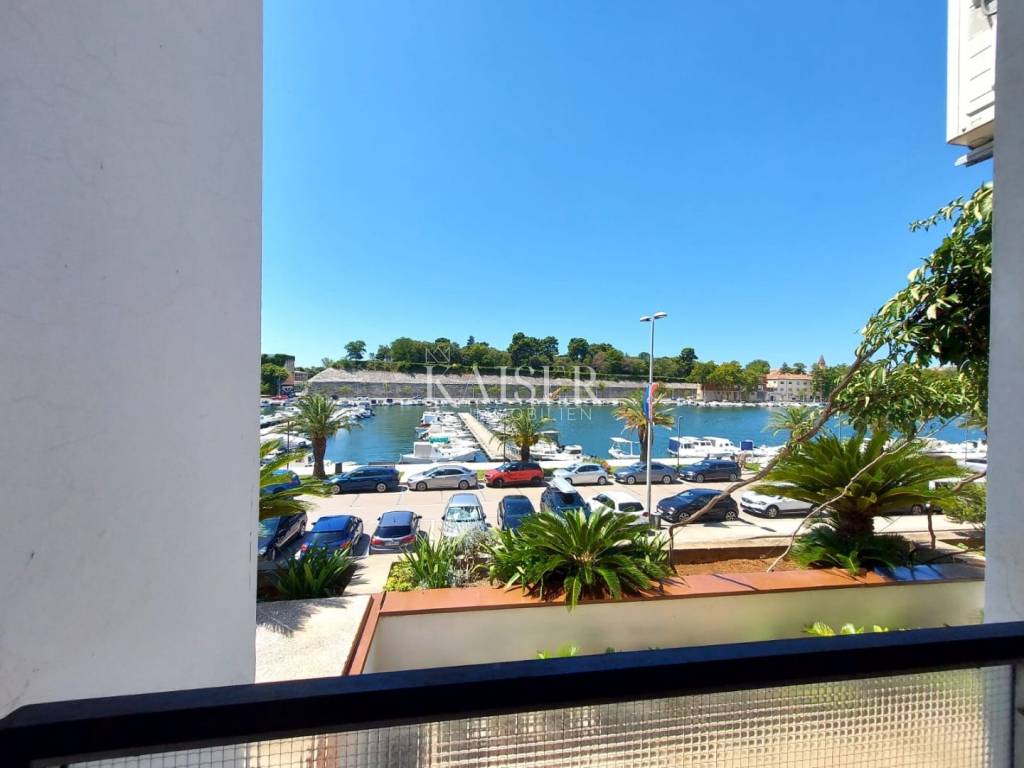 Kaiser Immobilien s ponosom predstavlja ovu jedinstvenu priliku u samom srcu Zadra – četverosobni stan u legendarnom kompleksu Ljepotica, na prestižnoj lokaciji uz Obalu kneza Branimira, s pogledom koji oduzima dah. Smješten na prvom katu, stan se prostire na 123 m². Raspoređen je uzduž dva paralelna hodnika. Ulazni, prostrani hodnik vodi do kuhinje s blagovaonicom i lođom okrenutom prema stražnjem dijelu zgrade. Duž cijelog hodnika sa prostranim zidnim ormarima, ulazi se u dnevni boravak s jugozapadnom lođom i velikom terasom obasjanom suncem, gdje su posađene elegantne Cikas palme – idealno mjesto za jutarnju kavu ili opuštanje uz poglede na lučicu Jazine i gradske bedeme.