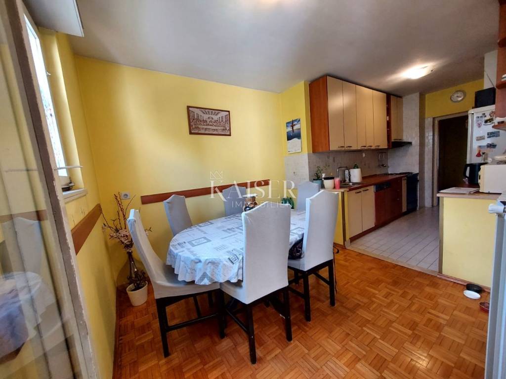 Na međukatu ulaza smještena je drvarnica od oko 3 m², koja pripada stanu, čime je dodatno proširen prostor za pohranu. Zgrada je sagrađena 1979. godine i ima energetski certifikat C razreda. Dio je višekatne građevine opremljene liftom, ima pet katova, a godišnji trošak centralnog grijanja iznosi približno 900 € – što je rijetka pogodnost u ovom dijelu grada.