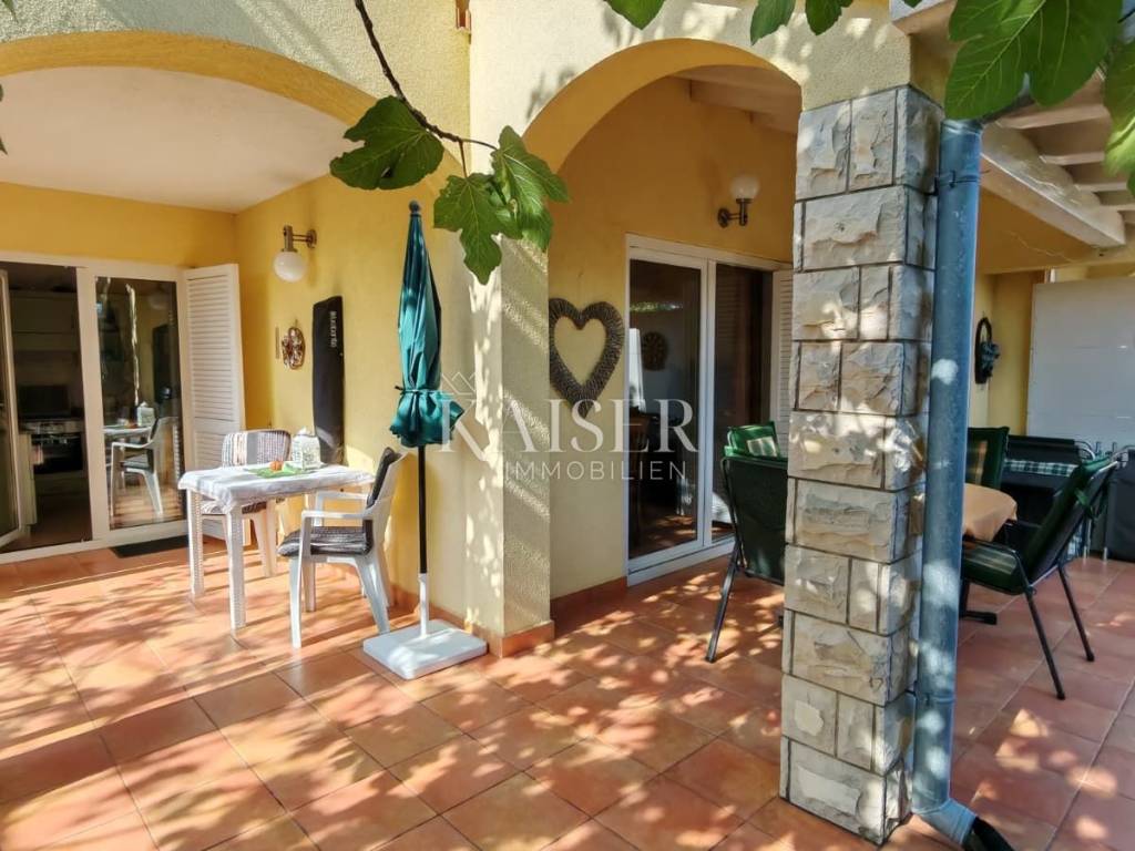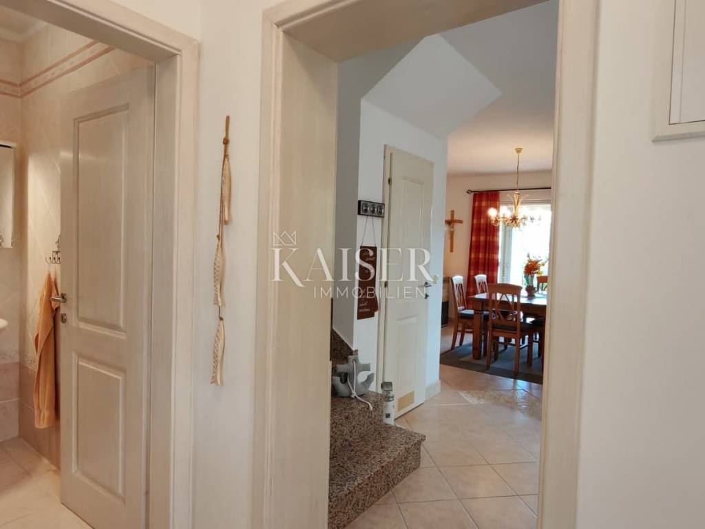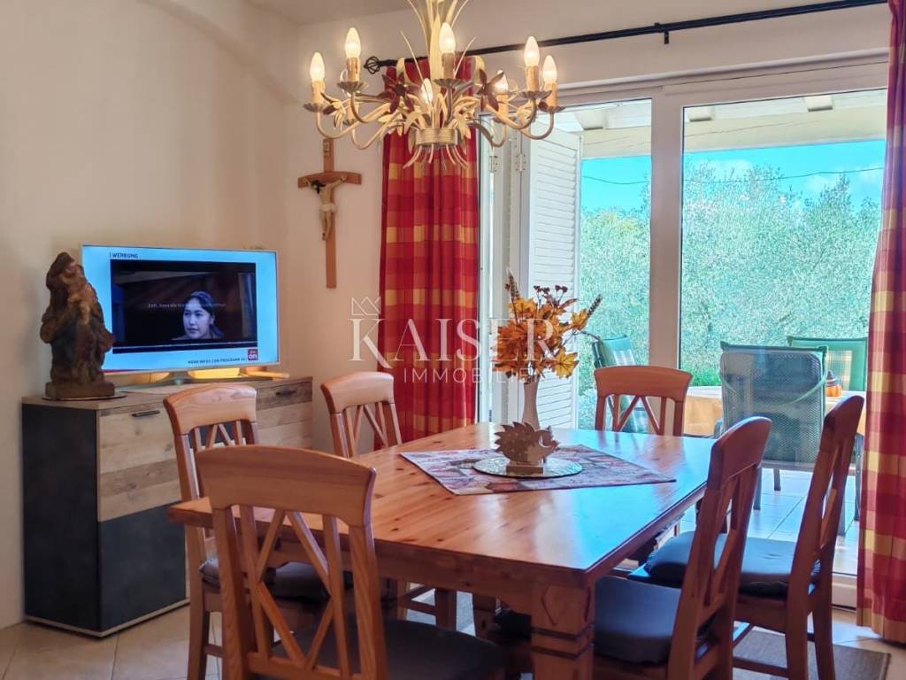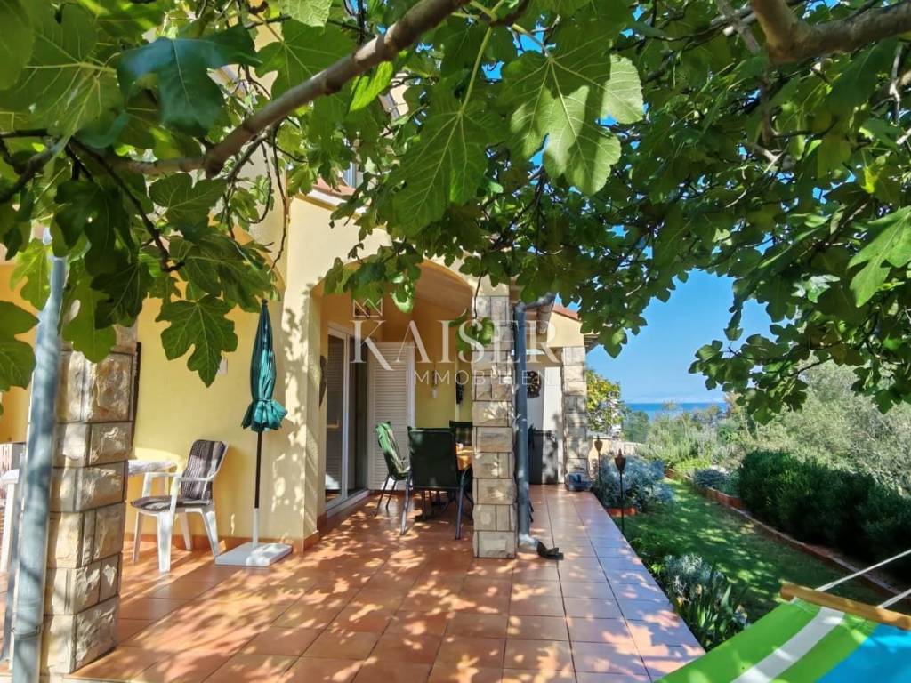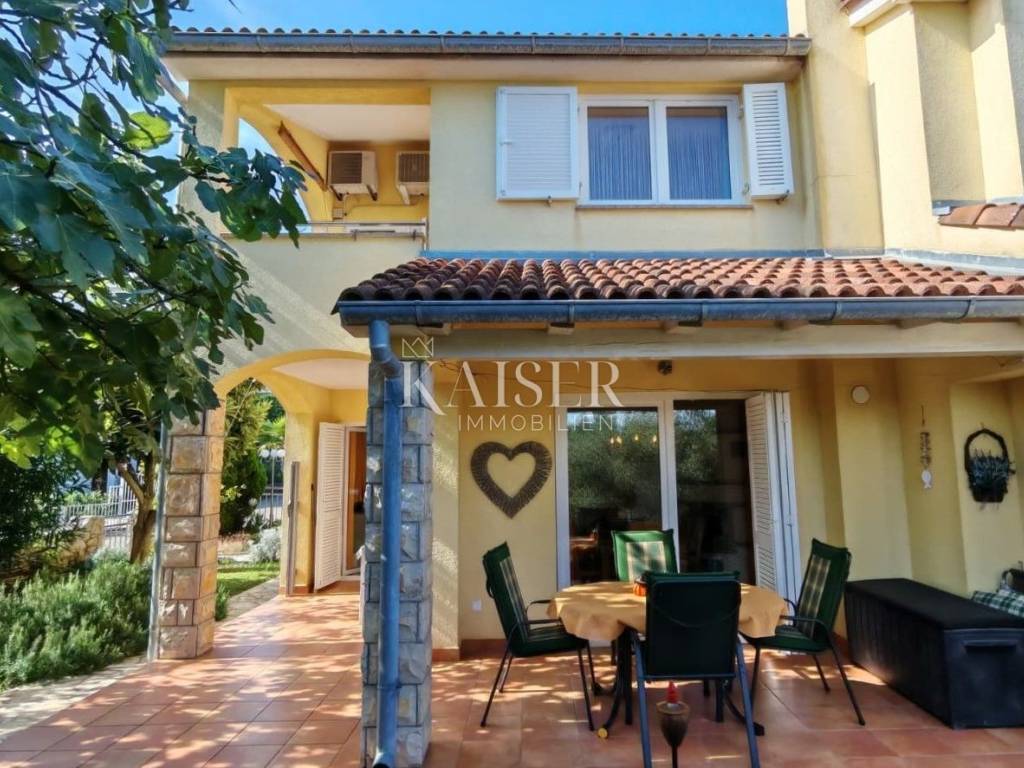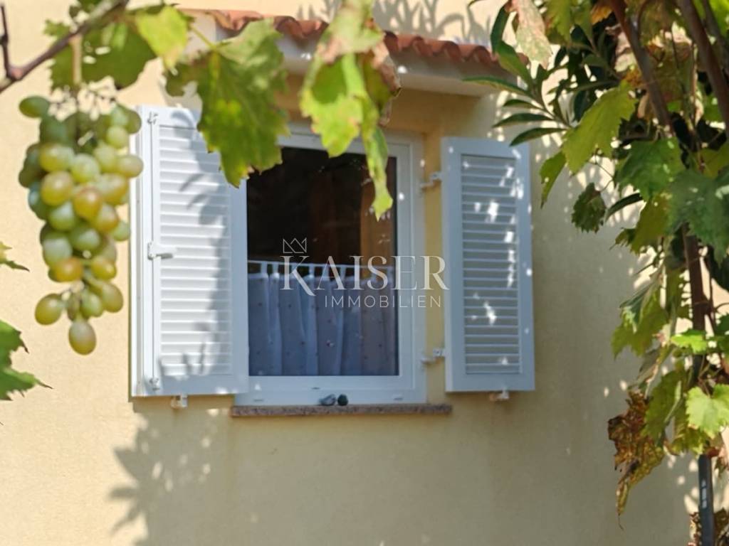 Kaiser Immobilien s ponosom predstavlja šarmantnu dvojnu kuću stambene površine 80 m², smještenu na iznimnoj lokaciji svega 250 metara od mora. Smještena u mirnoj slijepoj ulici, okružena zelenilom i potpunim mirom, ova nekretnina nudi savršeno utočište za opuštanje, a s vrta i kata pruža se prekrasan pogled na more i još netaknutu prirodu.
