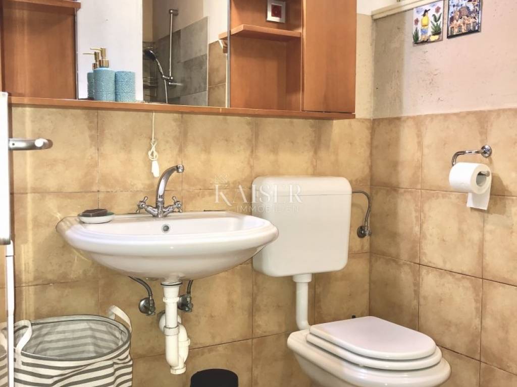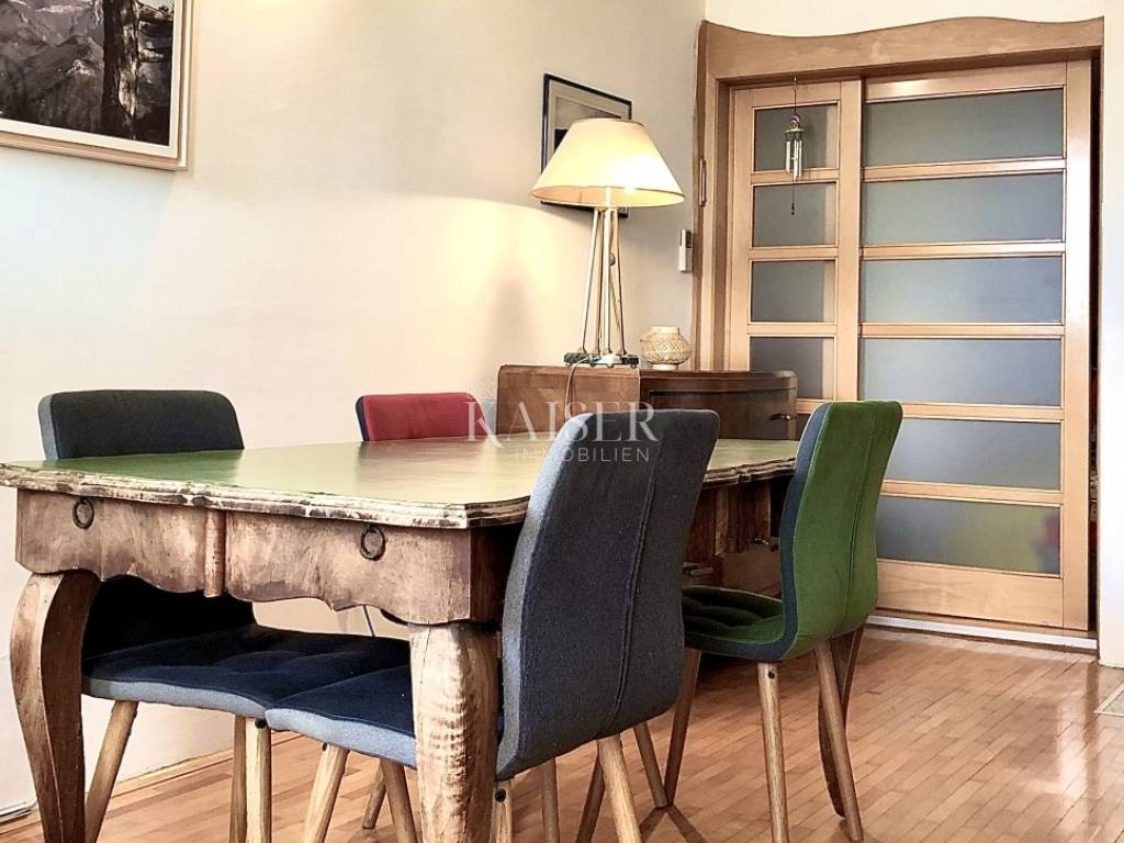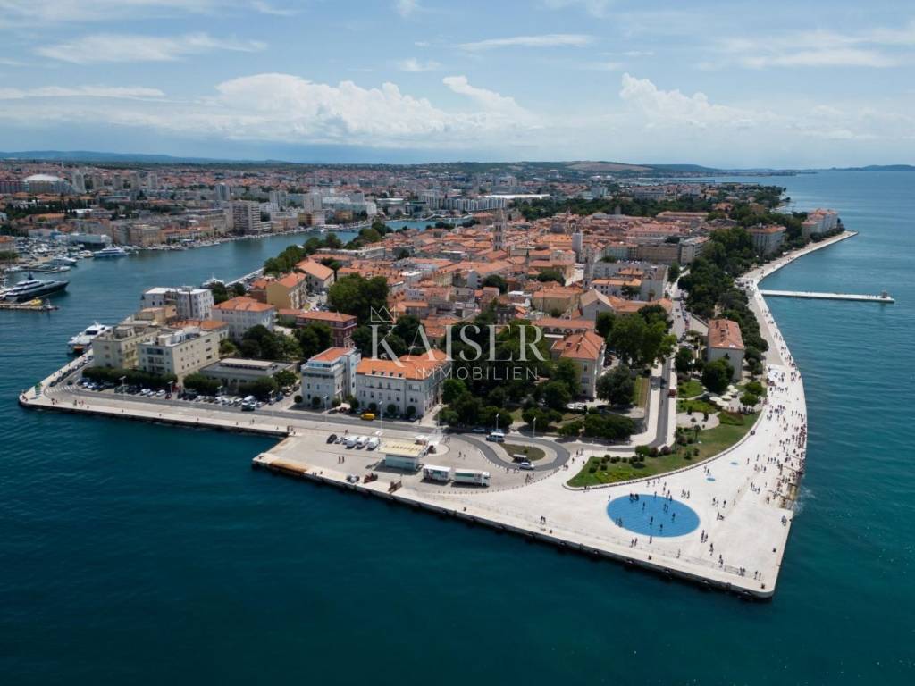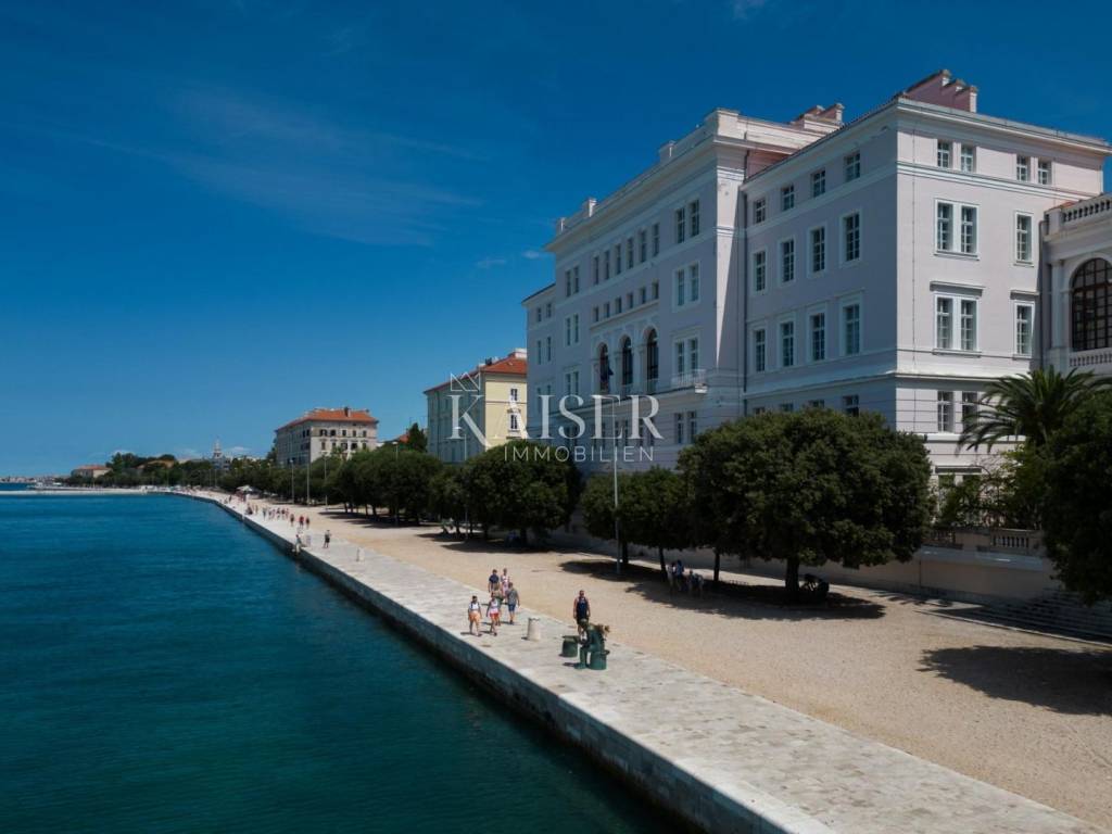 Kaiser Immobilien s ponosom predstavlja ovaj stan u samom centru Zadra, na prestižnoj lokaciji zadarske rive, elegantan i potpuno namješten stan površine 82.48 m², smješten na prvom katu stambene zgrade s liftom. Stan odiše urbanim šarmom i mediteranskom lakoćom življenja, s balkonom koji pruža izravan pogled na more i otoke, stvarajući svakodnevni doživljaj iznimne kvalitete. Prostor je funkcionalno organiziran – dnevni boravak s blagovaonicom i kuhinjom s pogledom , tri spavaće sobe i kupaonica, pun svjetla – sve temeljito renovirano 2015. godine. Grijanje i hlađenje osigurani su putem klima uređaja, a dodatnu ugodu pruža i estetski dojmljiva kaljeva peć. Zgrada je čvrste gradnje iz 1970. godine i stanu pripada i drvarnica u podrumu. Smješten u neposrednoj blizini škole, trgovina, ljekarni, kafića i restorana, a svega 10 minuta hoda od plaže, ovaj stan savršeno odgovara kako za cjelogodišnje stanovanje, tako i za luksuzni najam. Vlasništvo je uredno, bez tereta. Rijetka prilika za život ili investiciju na iznimno atraktivnoj, živopisnoj gradskoj lokaciji s karakterom.
