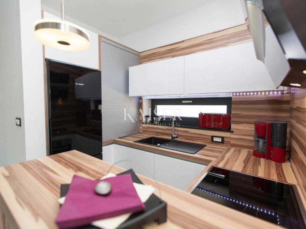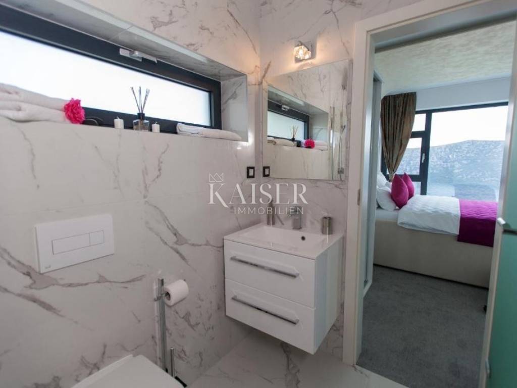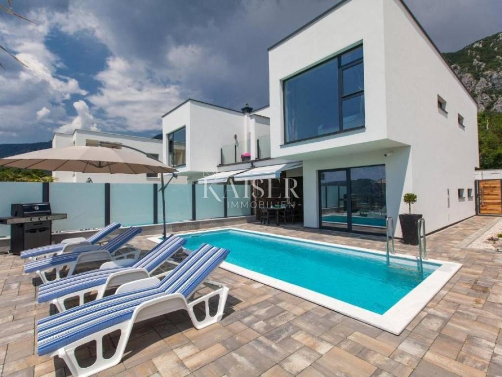 Kaiser Immobilien agencija u svoju ponudu stavlja predivnu modernu vilu u zaleđu Crikvenice, udaljenu oko 5 km od Crikvenice, koja pruža mirno okruženje u blizini obale i mora i moćnih planina ovoga kraja.