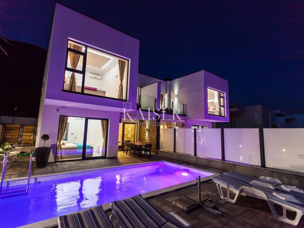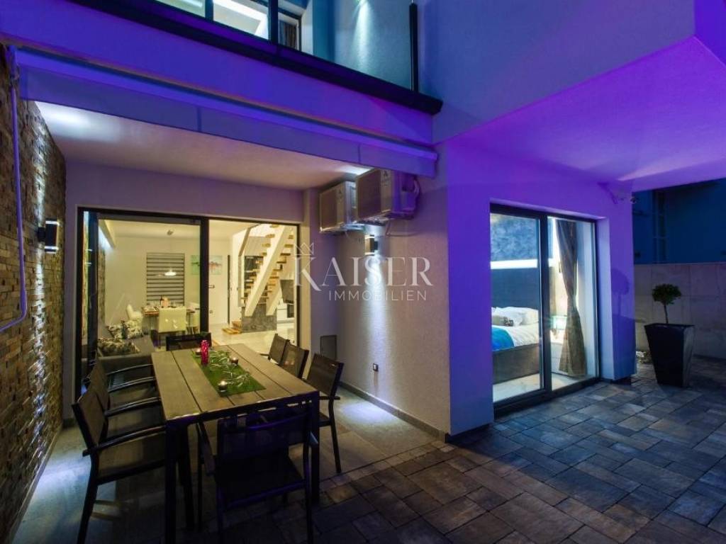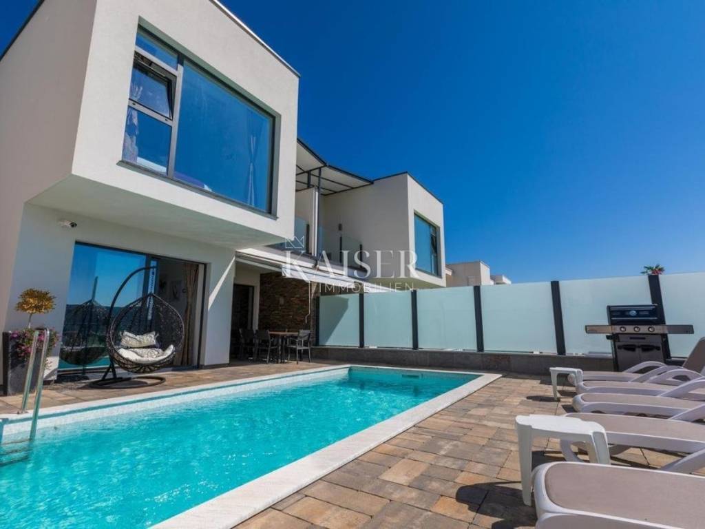 Moderna urbana vila jednostavnih linija, velikih ostakljenih površina koje idealno spajaju moderan, udoban interijer s predivnom prirodom zadovoljiti će i najzahtjevnije kupce.