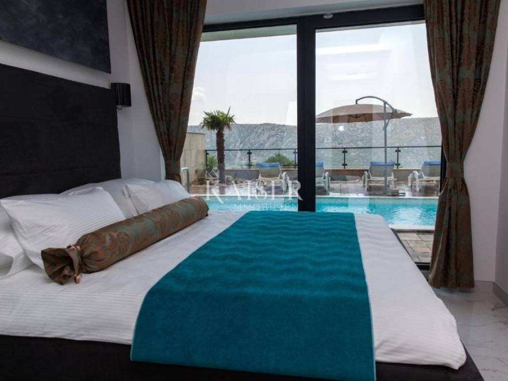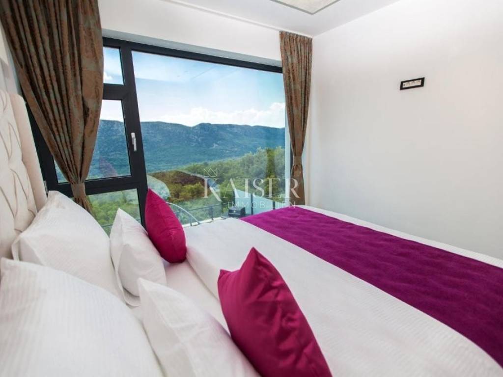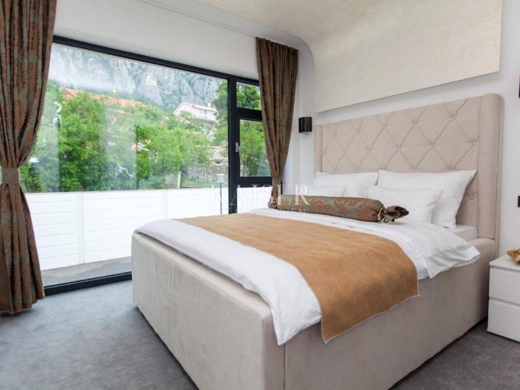 Elegantne stepenice vode do kata gdje se nalaze tri spavaće sobe s vlastitim kupaonicama. Dvije sobe sa svojih balkona pružaju predivan pogled na more i Tribaljsko jezero, dok jedna soba sa svoje terase gleda na prirodu i moćne litice zaleđa ovoga predivnog kraja.
