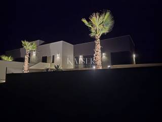 Unutrašnjost kuće odiše prozračnošću i svjetlom zahvaljujući open space konceptu koji objedinjuje kuhinju, blagovaonicu i dnevni boravak. Velike staklene stijene pružaju obilje prirodnog svjetla i otvaraju prostor prema vanjskom dijelu kuće s pogledom na okućnicu i privatni bazen.