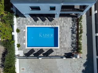 Kaiser Immobilien s ponosom predstavlja prekrasnu modernu kuću s predivnim pogledom na more, smještenu u mirnoj ulici. Ova impresivna nekretnina nudi sve što vam je potrebno za udoban i luksuzan život. Uživajte u privatnosti bazena, udobnosti dizalice topline i klimatiziranih prostorija, te lijepo uređene okućnice.