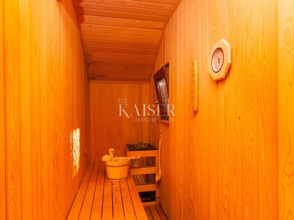 Na okućnici se nalazi bazen površine 17m2, sunčalište, natkrivena blagovaonica na otvorenom, te prostor za ležaljke, sve to čini idealan prostor za ljetne aktivnosti na otvorenom.