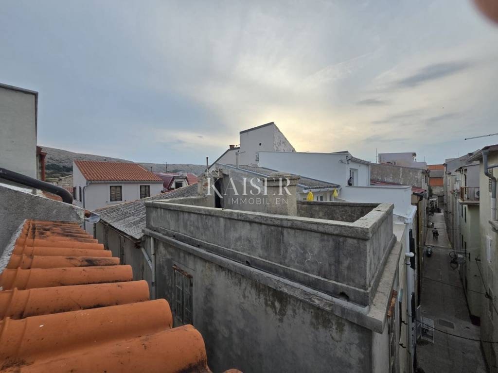 U srcu stare jezgre grada Paga, zaklonjena između kamenih ulica koje još uvijek pričaju priče starih vremena, smjestila se ova autentična dalmatinska kuća — prava ljepotica na četiri etaže, udaljena svega 100 metara od mirisne pješčane plaže i tek nekoliko koraka od gradskog trga.