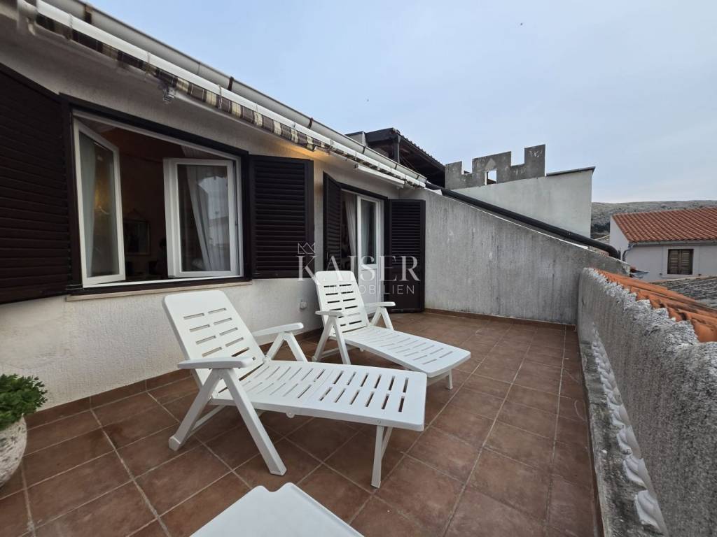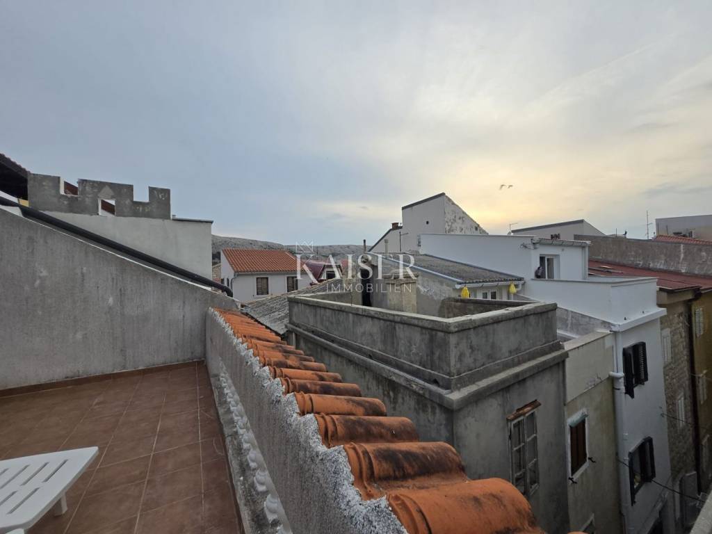I naposljetku, četvrta etaža skriva ono najposebnije: prostranu galeriju s izlazom na krovnu terasu od 25 m2, odakle se pruža očaravajući pogled na cijeli grad Pag i njegove kalete.