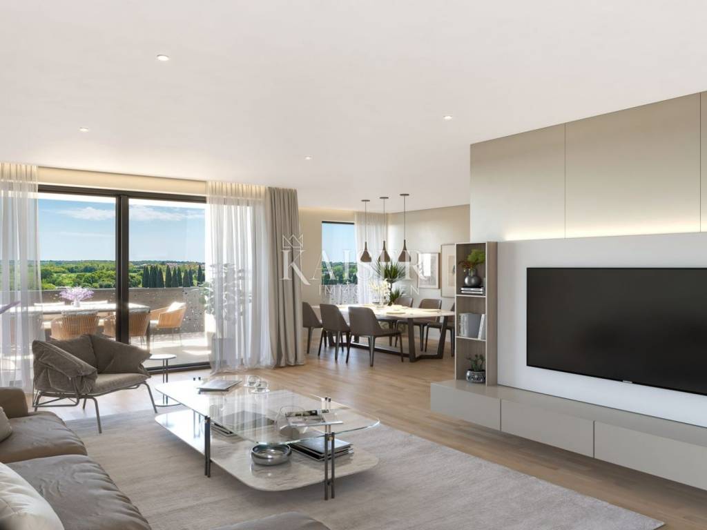 Kaiser Immobilen nudi moderan i funkcionalan stan u novogradnji. Stan je smješten u Umagu, u neposrednoj blizini svih važnijih sadržaja; dućani, vrtić, škola, dom zdravlja, sportski tereni, kafići i restorani. Ujedno se nalazi udaljenosti od samo 200m od prvih gradskih plaža, te centra grada i šetnica, što ga čini idealnim izborom za življenje kako za mlade zaposlene obitelji, tako i za one željne odmora i mira.