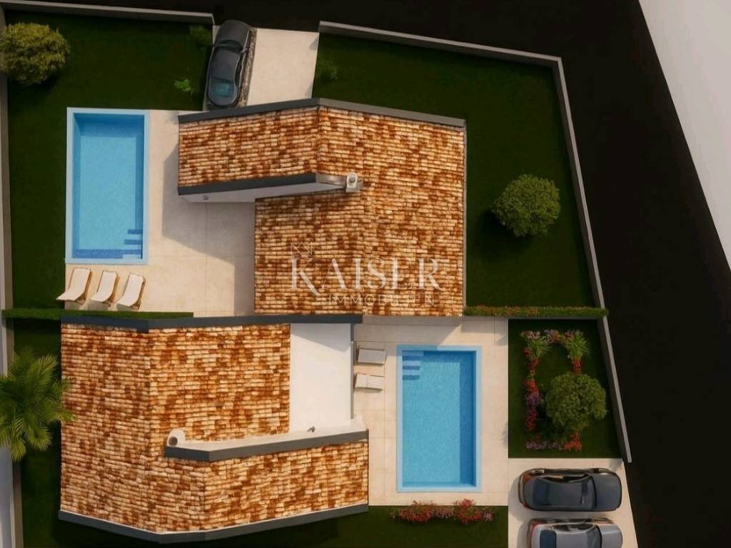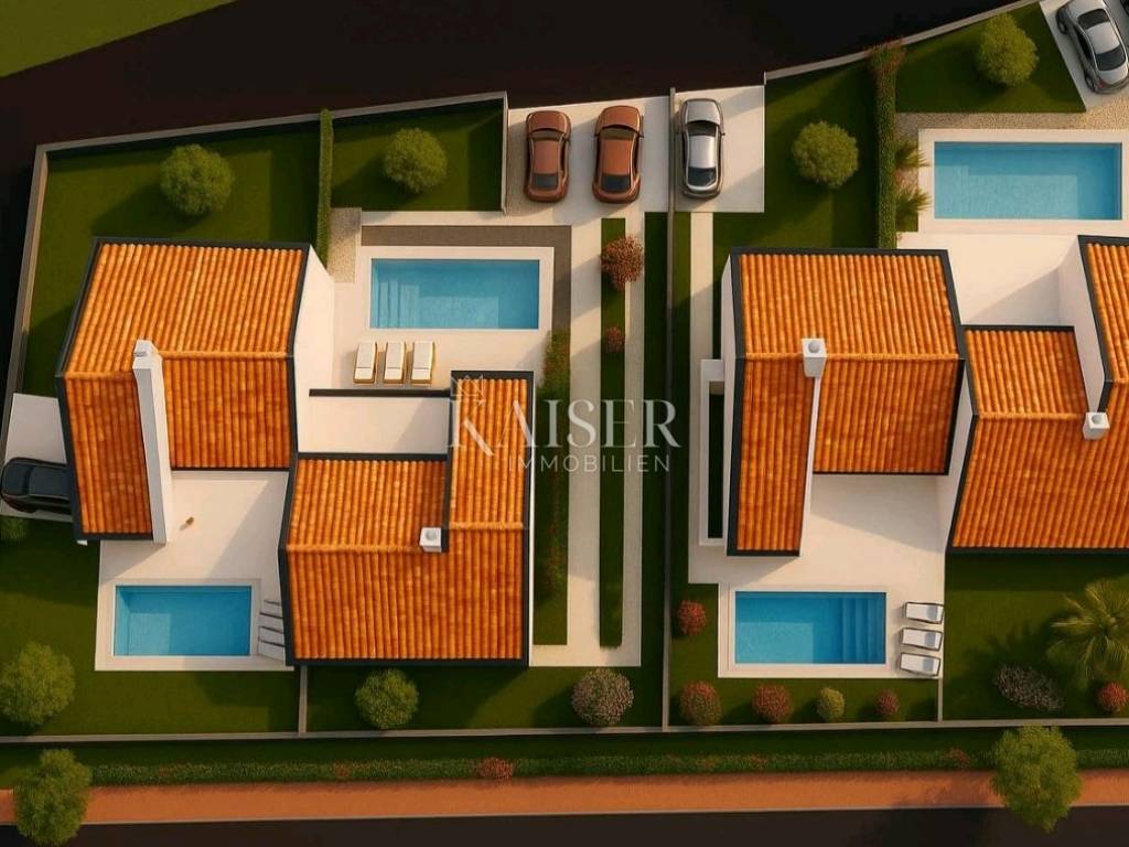 Kaiser Immobilien prodaje modernu dvojnu kuću u izgradnji s 3 spavaće sobe, vrtom i mogućnošću bazena – mirna lokacija u Istri