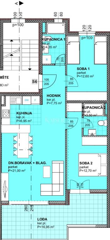 Lođa: 16,95 m² (neto korisna površina 12,71 m²) – Prostrana natkrivena terasa idealna za uživanje na otvorenom.