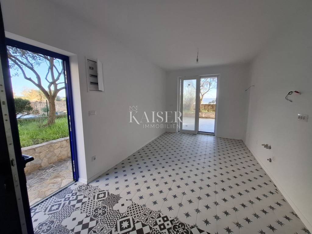 Stanu pripadaju i 2 parkirna mjesta 2x12,50 m2 (25 m2) te prostrani i lijepi kućni vrt površine 165,00 m2. Stan je novoizgrađen i ima pogled na more, savršeni mir na tihoj i elitnoj lokaciji. Ova nekretnina idealna je za sve koji žele uživati u luksuznom životu uz more, okruženi prirodnim ljepotama i nezaboravnim pogledima. Lokacija nekretnine idealna je za opuštanje u prirodnom ambijentu a sama kuća okružena je uređenim zelenilom, što dodatno pridonosi osjećaju mira i privatnosti. Vanjska terasa savršena je za opuštanje nakon dana provedenog na obližnjim plažama, ronjenja, pješačenja na obližnja brda ili vožnje biciklom.