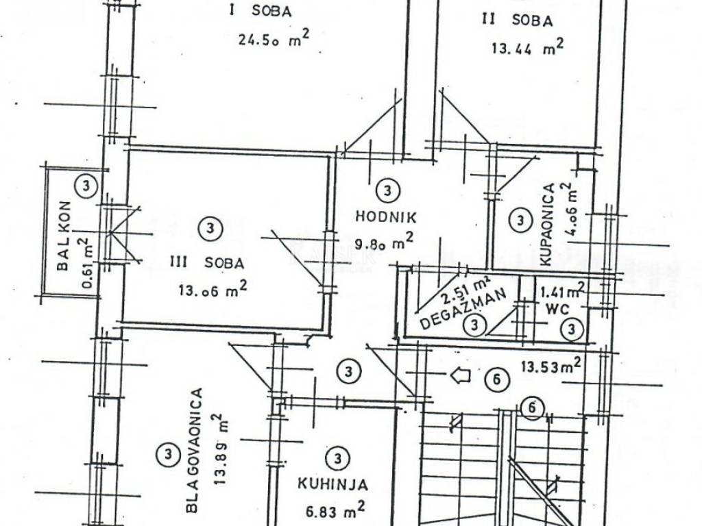 Stan se nalazi na prvom katu stare austrougarske stambene zgrade koja ukupno ima 2 kata, te ukupno 5 stanova, od koji je na prvom katu samo ovaj. Stan je ukupne korisne stambene površine 90.01m2.