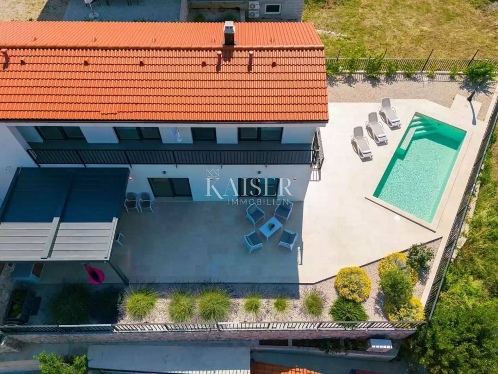Kaiser Immobilien vam predstavljam ekskluzivnu dvojnu vilu smještenu u mirnom i idiličnom dijelu Vrbnika na otoku Krku, koja svojom sofisticiranom arhitekturom i promišljenim dizajnom pruža vrhunski komfor te jedinstven doživljaj luksuza. Smještena svega 600 metara od mora i svih potrebnih sadržaja, ova vila nudi spektakularan pogled na more i staru gradsku jezgru Vrbnika, što je čini savršenim odabirom za one koji traže sklad između privatnosti i blizine urbanih sadržaja.