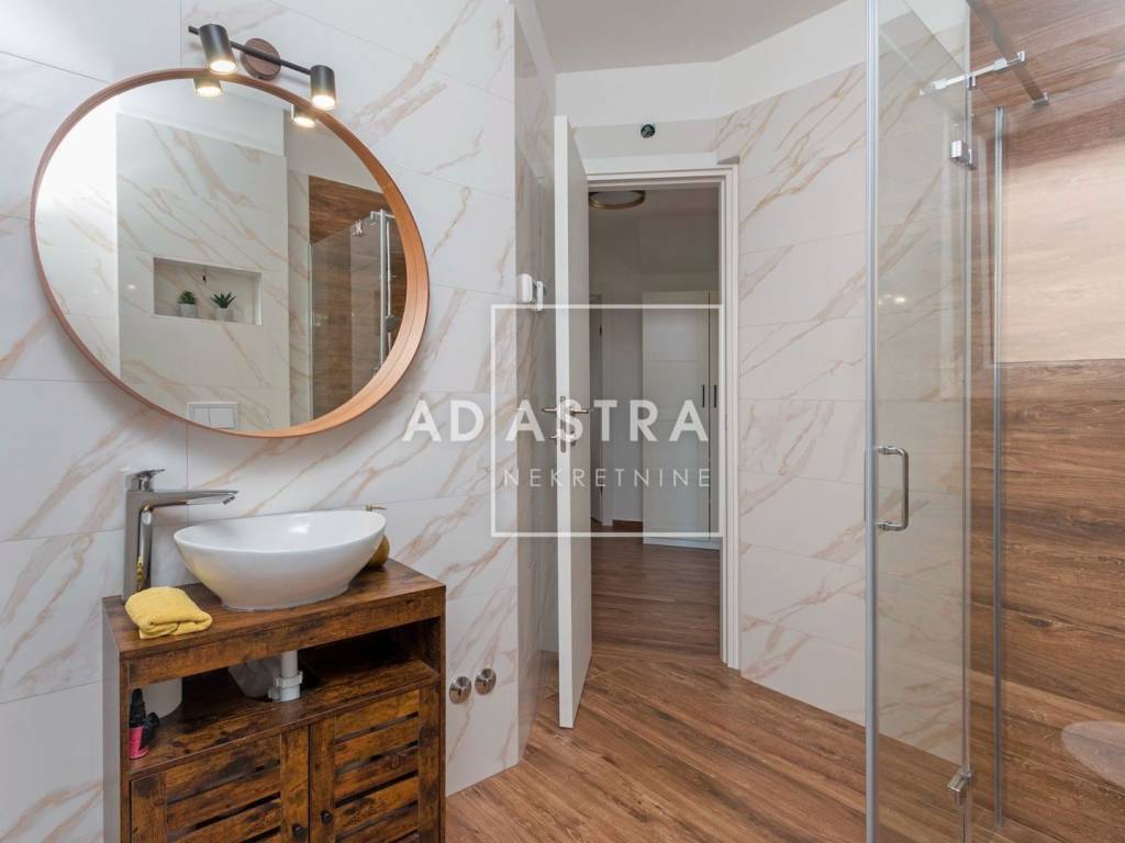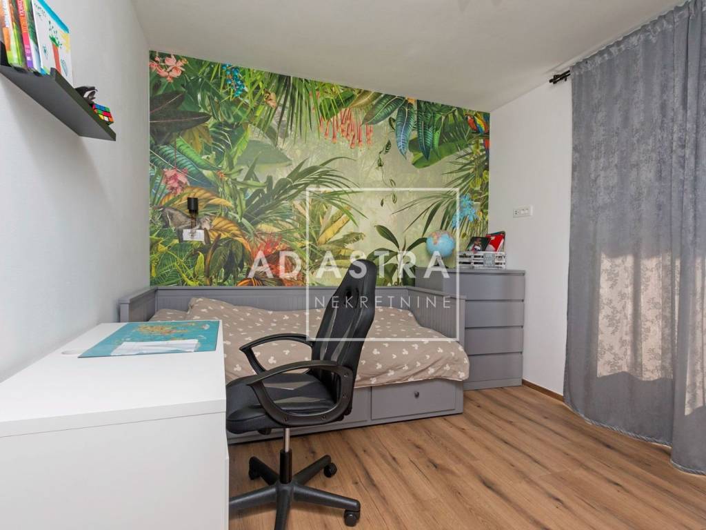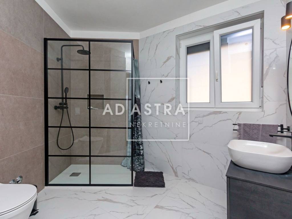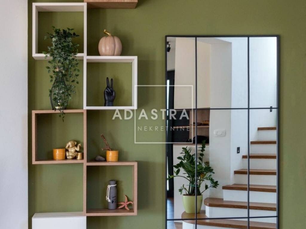 Kuća se nalazi na idiličnoj i mirnoj poziciji i proteže se na dva kata. Prizemlje se sastoji od sobe s kupaonicom, dnevnog boravka koji izlazi na natkrivenu terasu, blagovaone i kuhinje u open space konceptu. Pored kuhinje nalaze se ostava i praonica rublja. Prvi se kat sastoji od 3 sobe i 2 kupatila te predivne, prostrane terase sa staklenom ogradom i očaravajućim pogledom na okolnu prirodu.