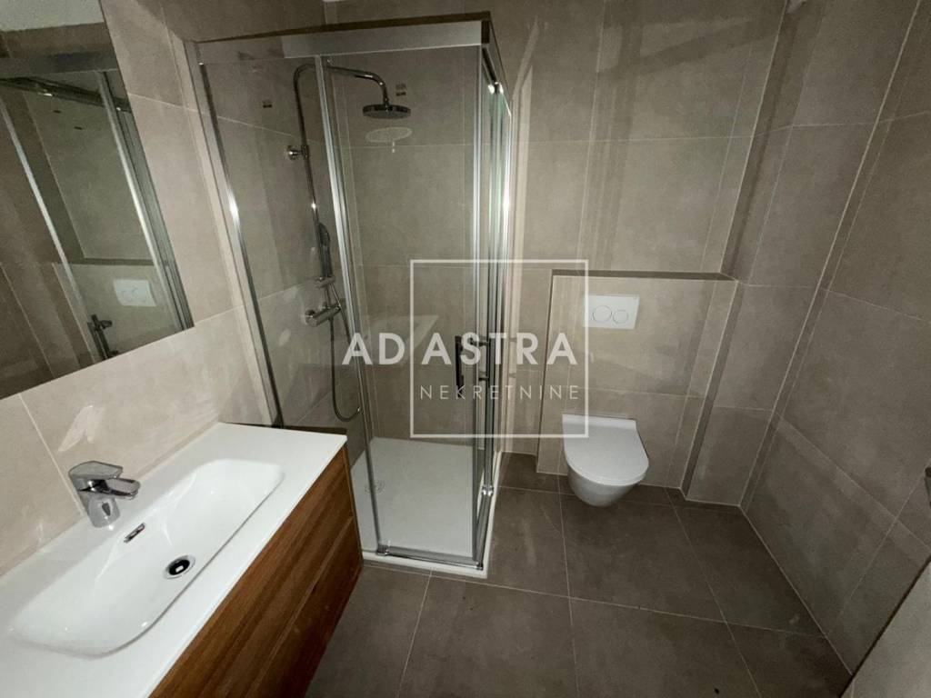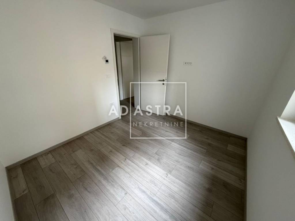 U prodaji je stan u novogradnji nadomak centra grada. Sastoji se od kuhinje sa blagovaonicom i dnevnim boravkom, hodnika, dvije spavaće sobe, kupaonice te lođe. U cijenu stana uključeno je i vlastito natkriveno parkirno mjesto.